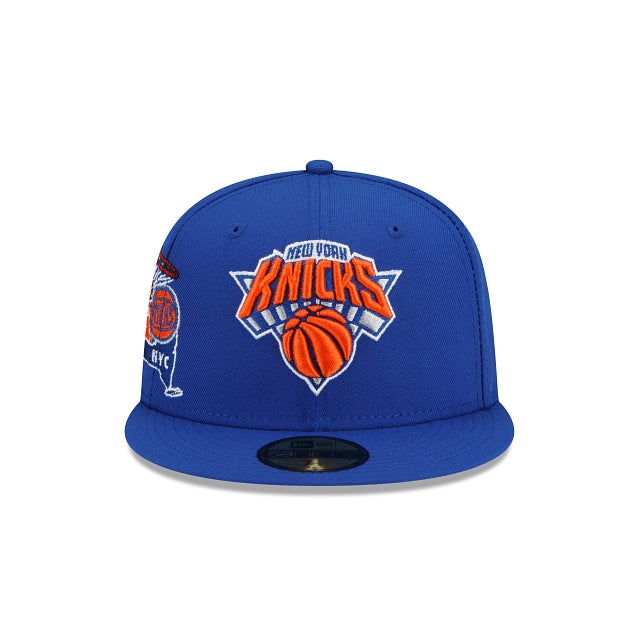 Get the foam finger ready. The New York Knicks Fan Out 59FIFTY Fitted Cap features an embroidered Knicks logo at the front panels, a city inspired graphic embroidered at the front right-wear side and the NBA logo embroidered at the rear.