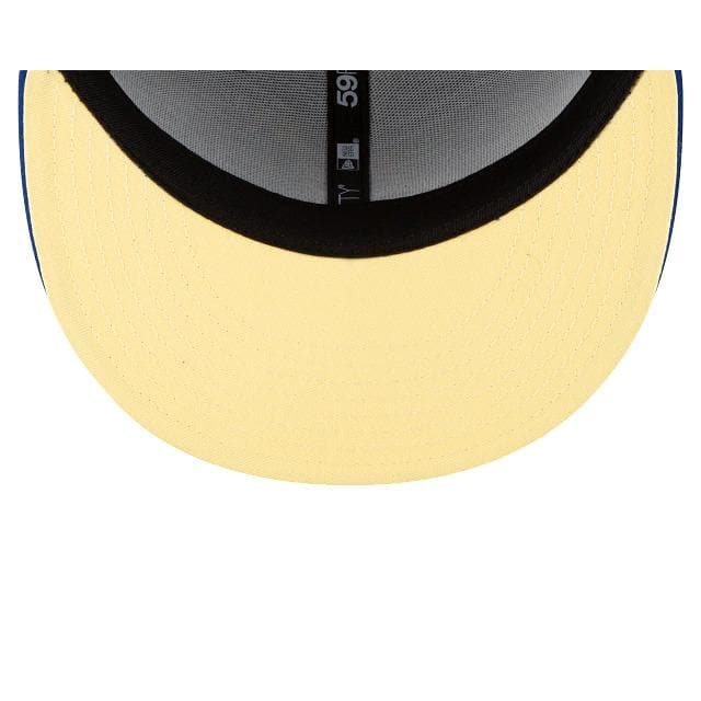 The New York Mets Side Patch Bloom 59FIFTY Fitted Cap features an embroidered Mets logo with floral detailing at the front panels, a World Series side patch embroidered at the right wear side and a team logo at the rear. Additional details include a yellow undervisor.