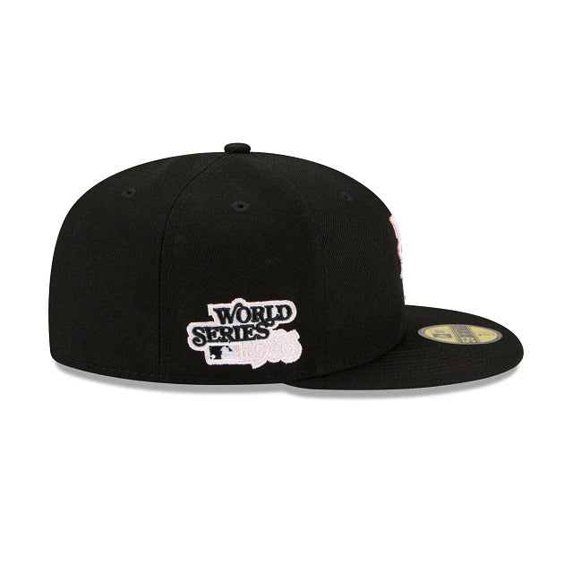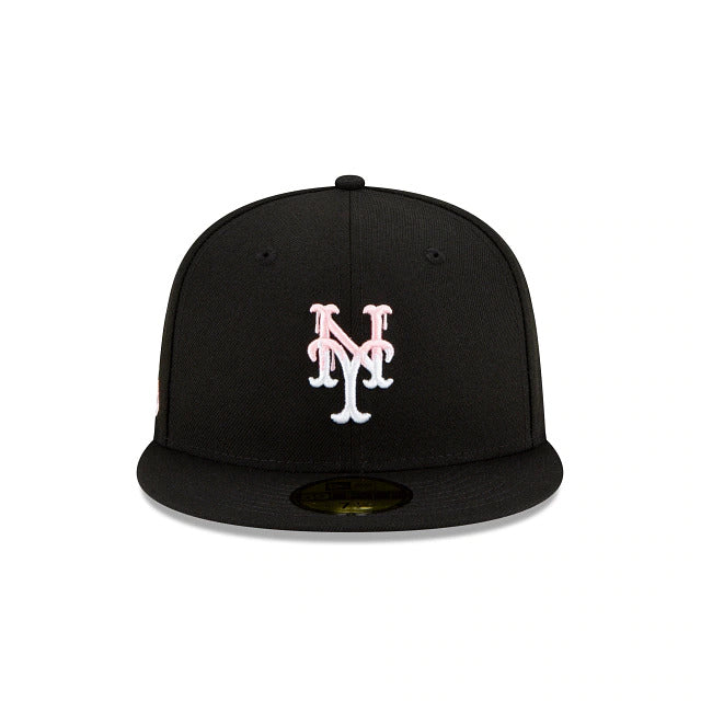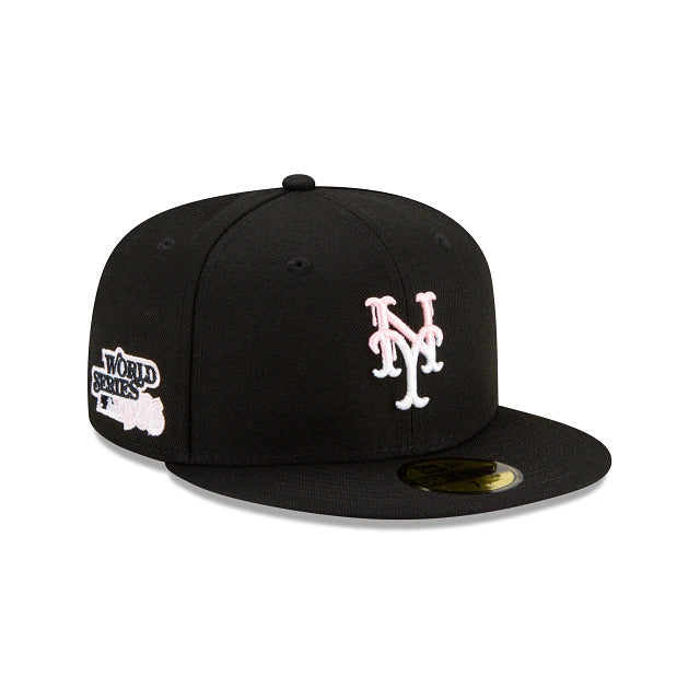 The New York Mets Team Drip 59FIFTY Fitted Cap features the team embroidered logo with a pink drip detailing at the front panels with a World Series side patch at the right-wear side and the MLB Batterman logo at the rear. Additional details include a pink undervisor.