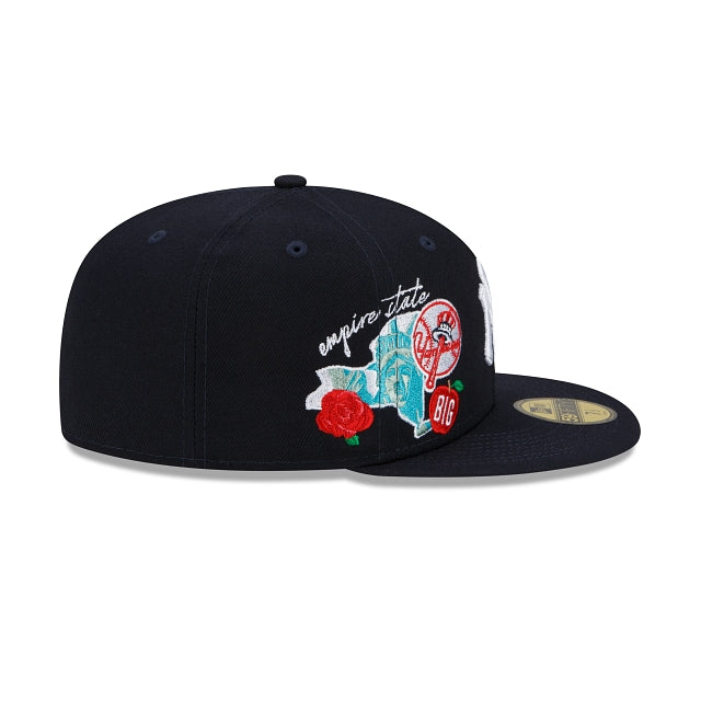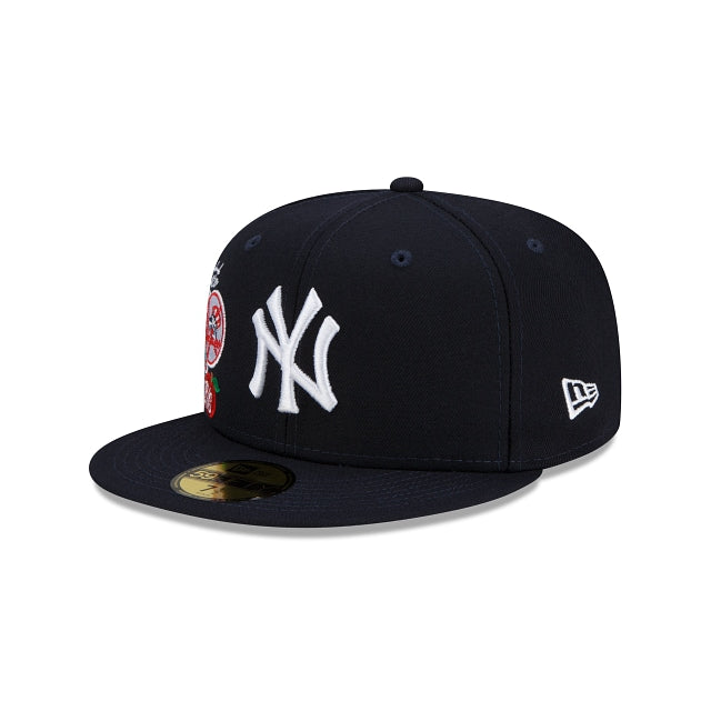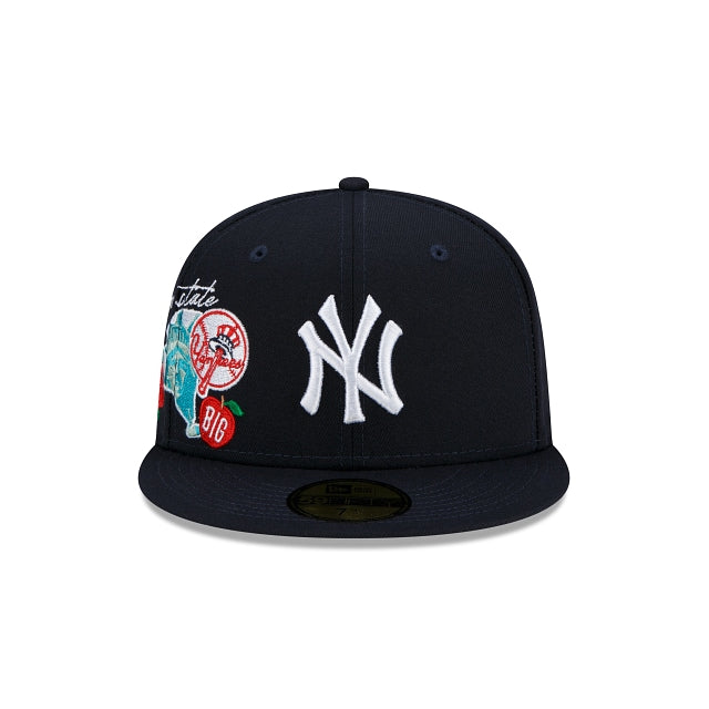 City ties. Represent your team with the New York Yankees City Cluster 59FIFTY Fitted Cap featuring an embroidered Yankees logo at the front panels with a city inspired patch at the right-wear side and a matching MLB Batterman logo at the rear. Additional details include a gray undervisor.