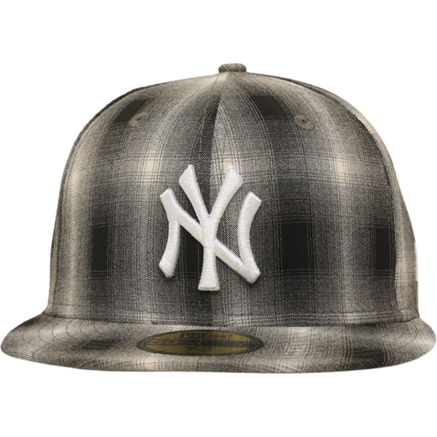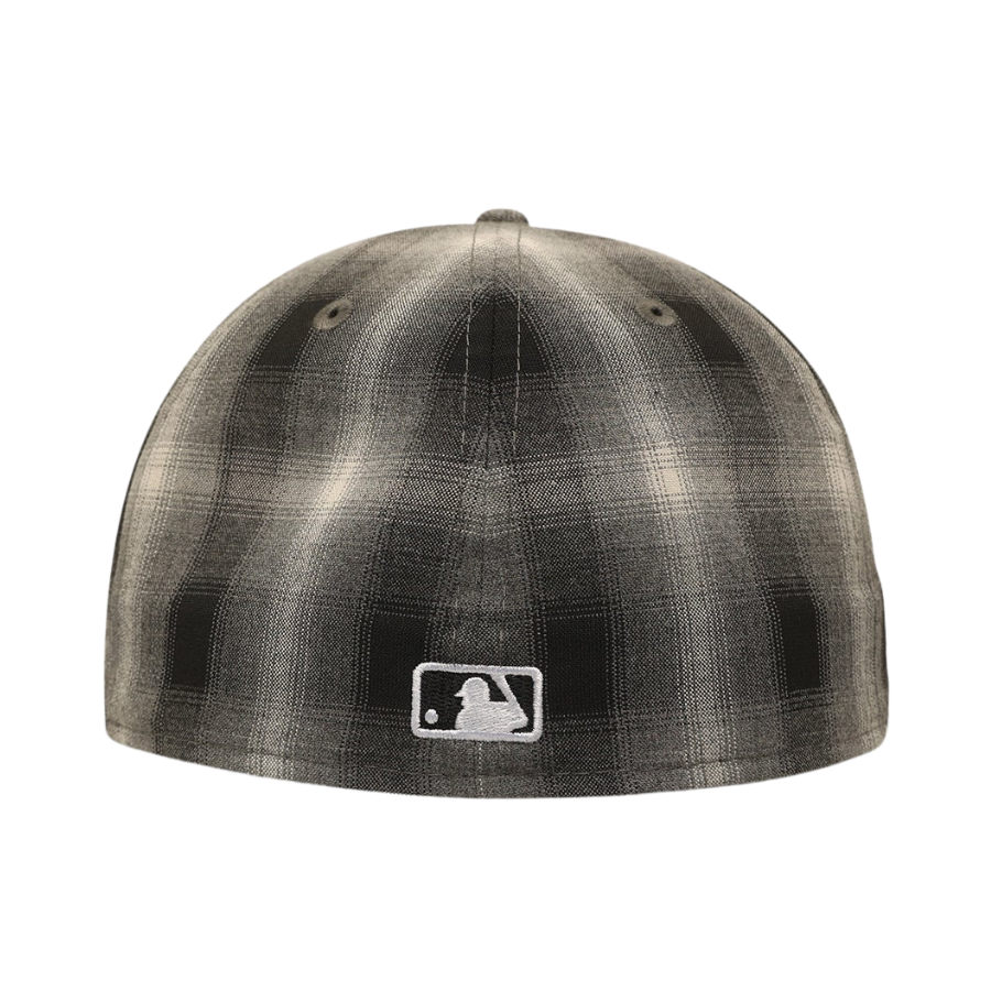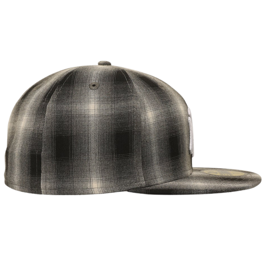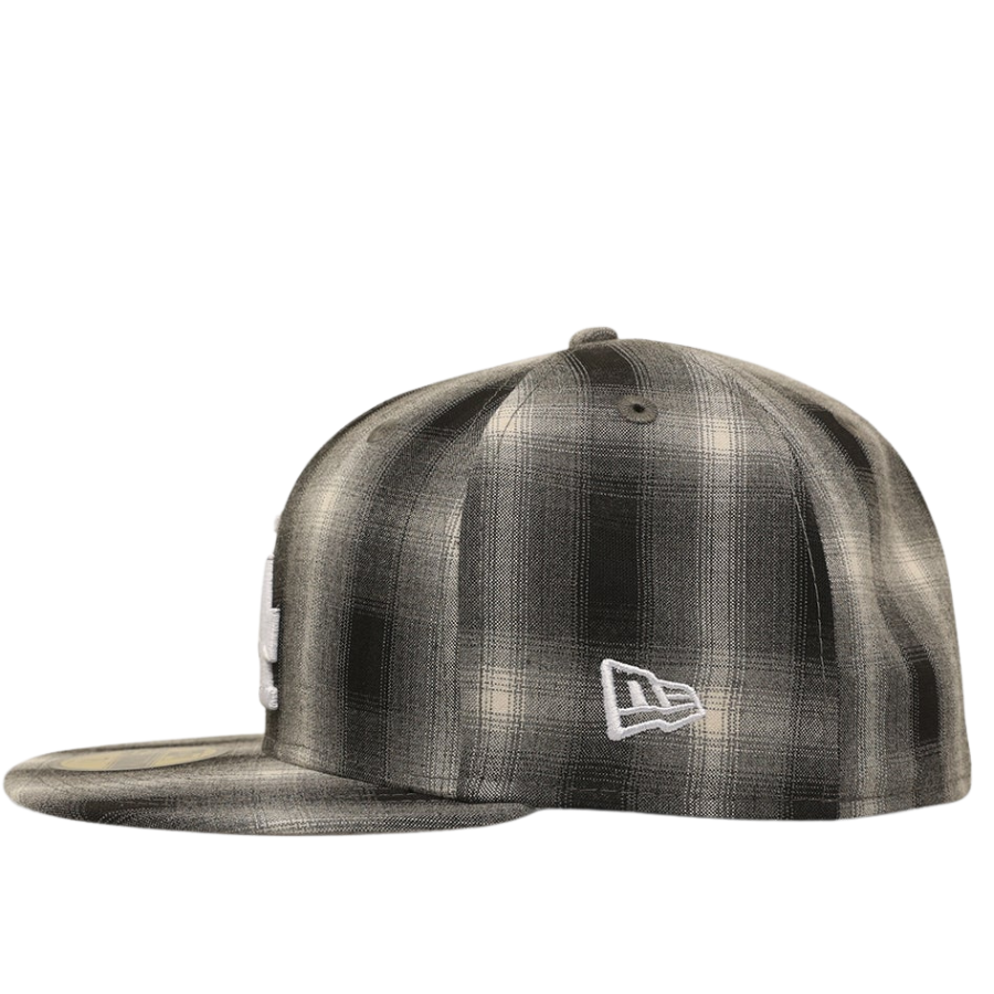 This New Era New York Yankees 'Full Plaid' 59FIFTY Fitted Hat was released by Culture Kings. The fitted has a black and white plaid six panel structured high crown and eyelets with a squatchee button. The flat bill of the fitted cap is also plaid with a grey undervisor and white sweatband. The front panel features the New York Yankees logo embroidery. The left panel of the fitted displays the New Era logo and the official MLB logo on the rear-crown .