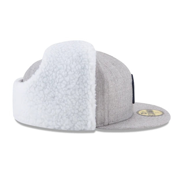 The New York Yankees Dogear 59FIFTY Fitted features an allover wool blend fabrication with an embroidered Yankees logo at the front panels and adjustable faux fur lined ear flaps.