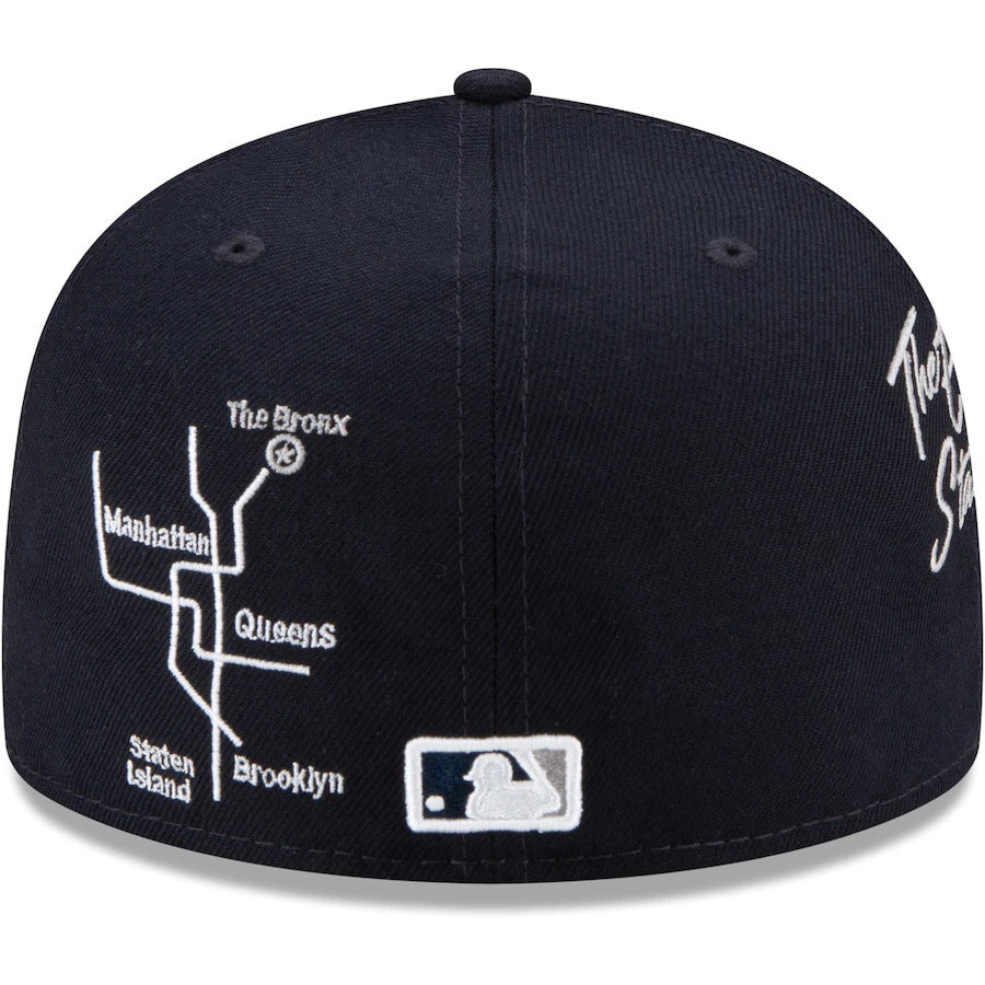 Rep the local vibe of your New York Yankees with this City Transit 59FIFTY hat from New Era. It features the New York Yankees logo in raised embroidery across the front and graphics that relate to the team's hometown on all the panels. The fitted construction also creates a snug feel for the perfect fit.