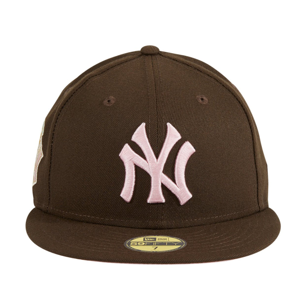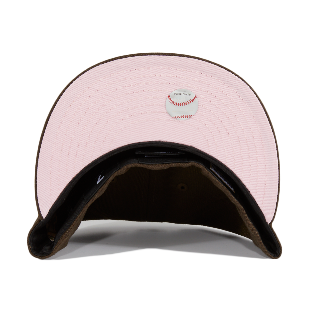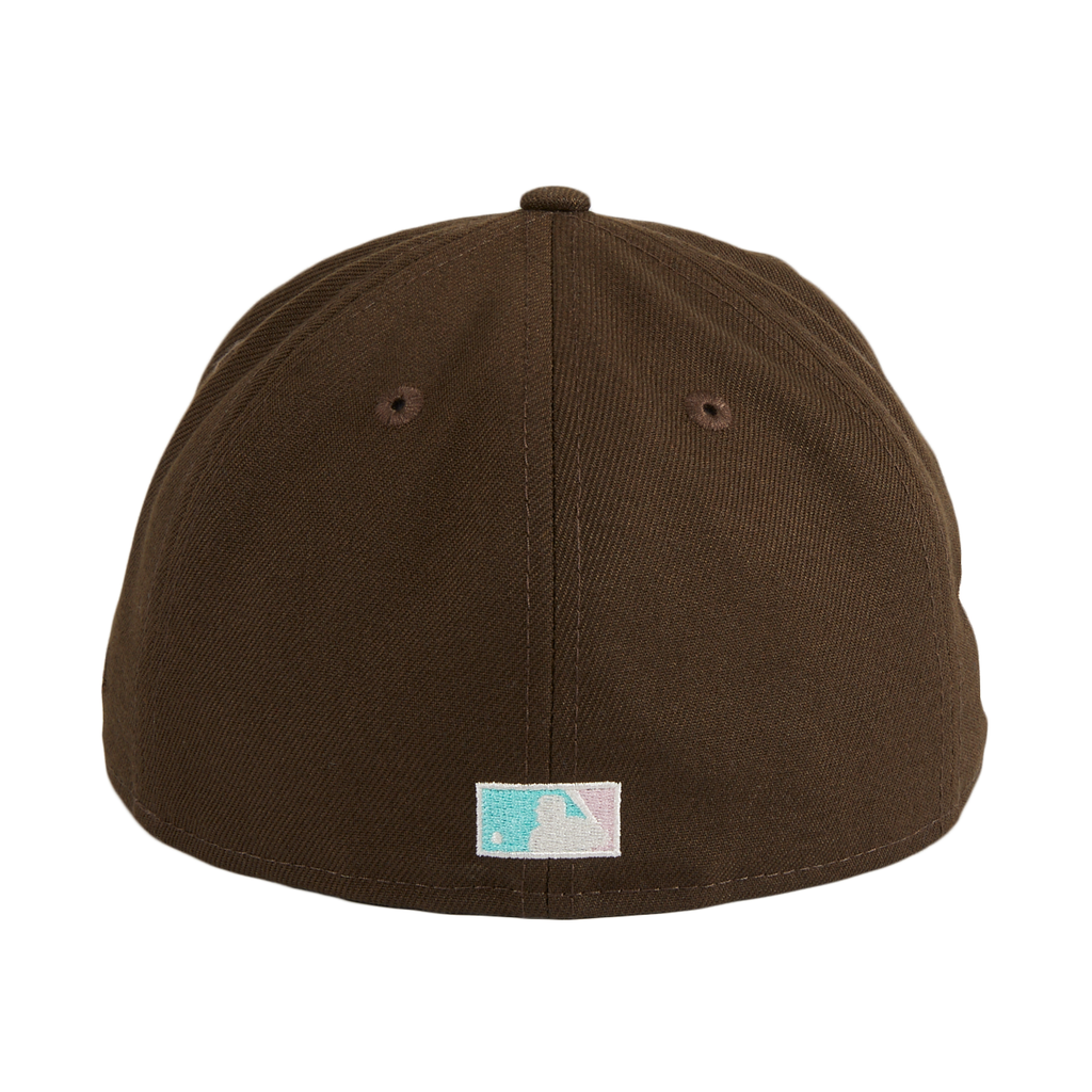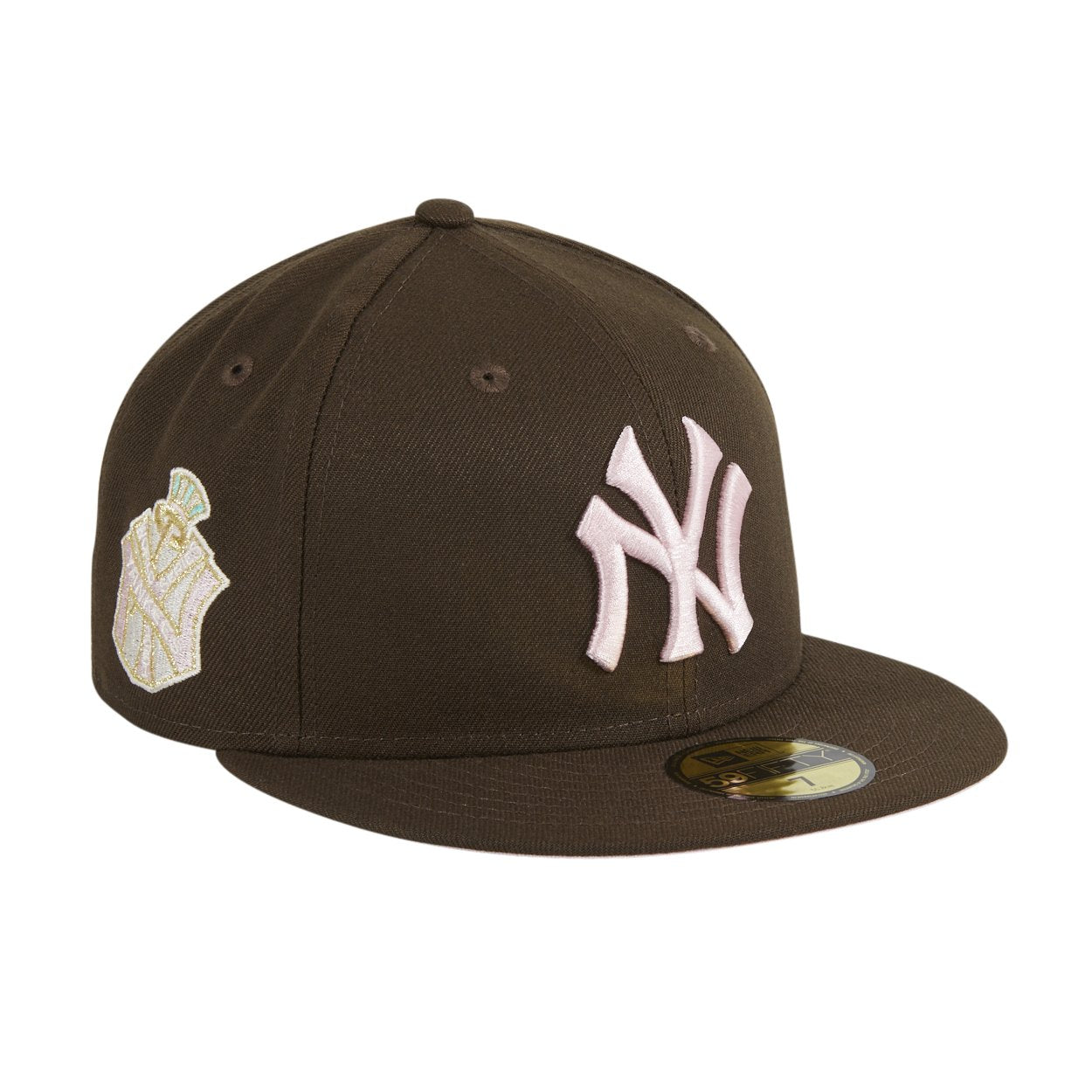 This New Era New York Yankees Spumoni fitted hat is a Hat Club Exclusive with a dark brown & pink colorway with mint green accents. The fitted features a brown six panel structured high crown, embroidered eyelets and fabric squatchee button. The flat bill of the fitted is also brown with a soft pink undervisor. The front panel features the MLB teams logo and a side patch on the right panel.