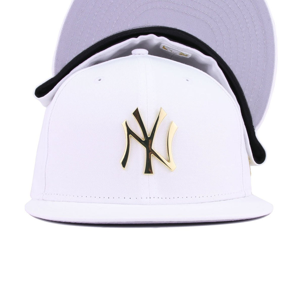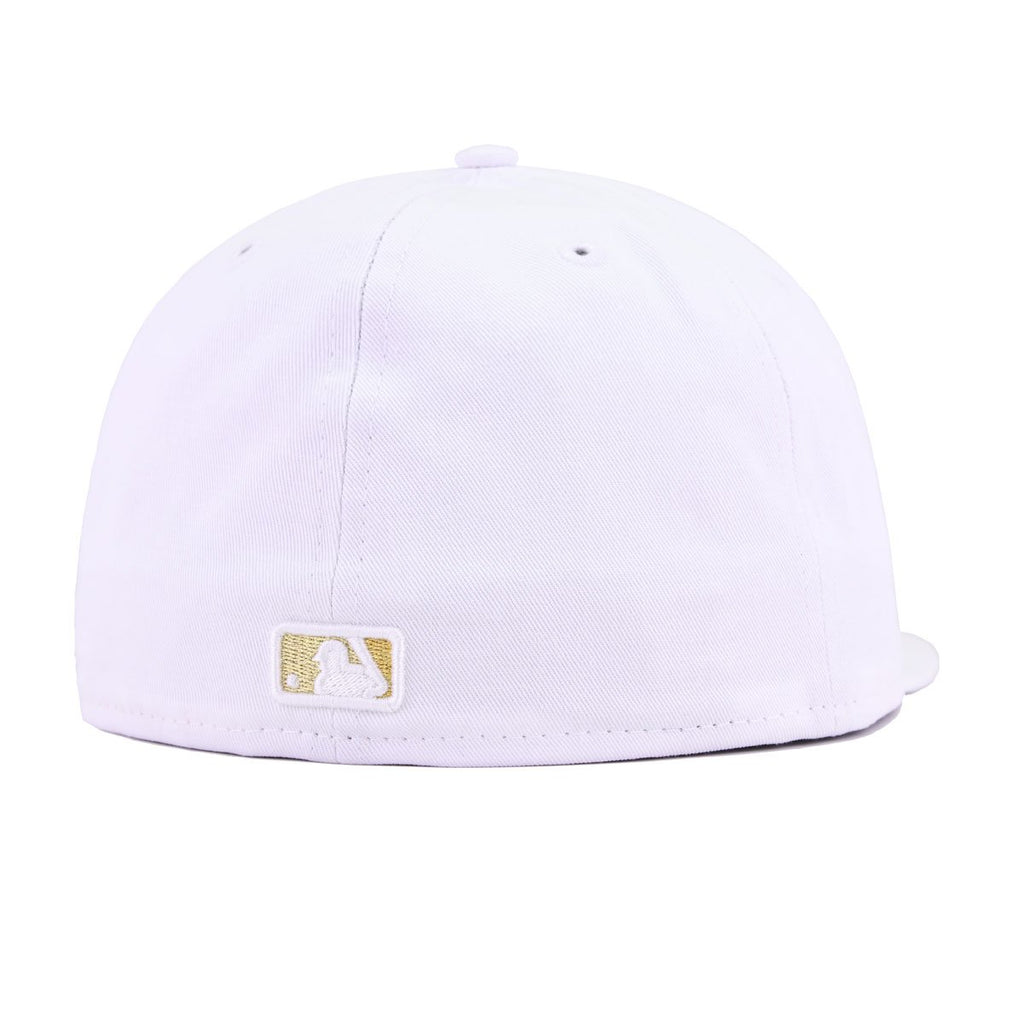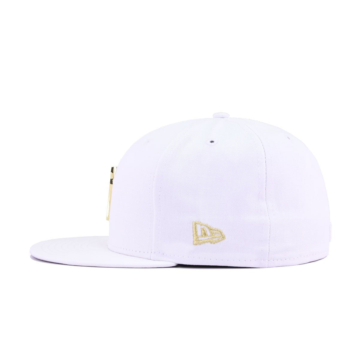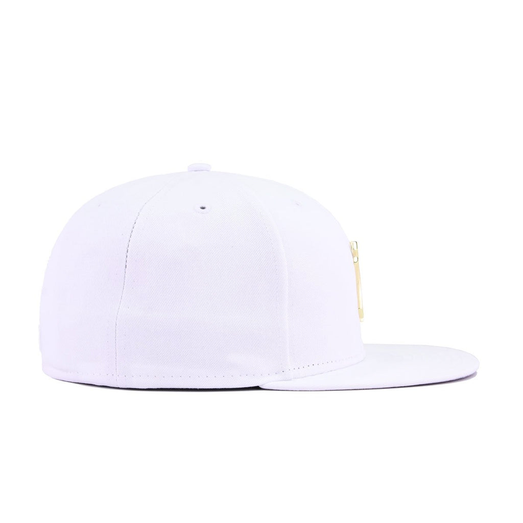 The idea behind this custom was to bring two different kinds of "clean" into one fitted. One: clean white twill. Two: clean Gold Metal Badge. Together, the two elevate each other and make one of the crispest customs we've seen come through our shelves, and the iciness of this custom is thrown to a whole other level.