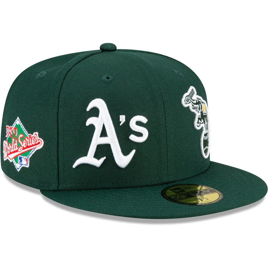 Show off Oakland Athletics history from all sides with this Patch Pride 59FIFTY hat by New Era. Its eye-catching design features Oakland Athletics graphics through the years on every panel. The flat bill also keeps you shaded, while the fitted construction provides a perfect fit.