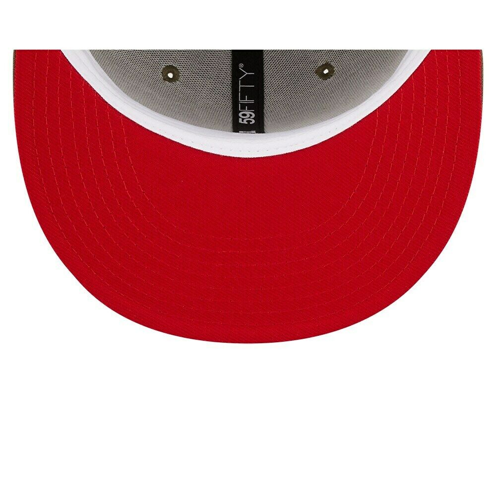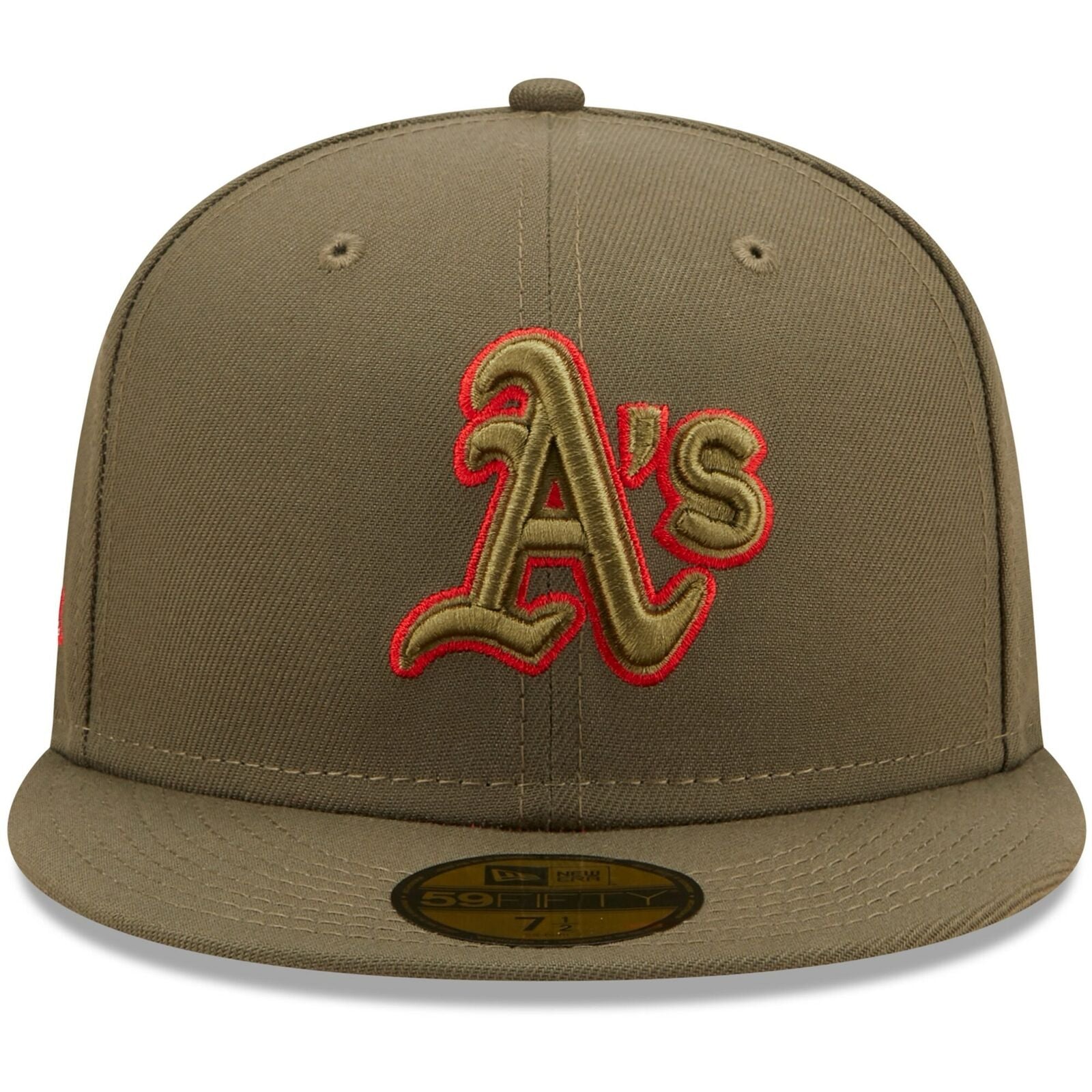 For an Oakland Athletics-inspired look that truly pops, cap it off with this Scarlet Undervisor 59FIFTY fitted hat. With a crisp Oakland Athletics logo set against an allover olive green shade, this New Era hat also has bold embroidery on the side dedicated to a memorable moment in franchise history. Show the world that you're no fairweather fan by donning this cap on game day.