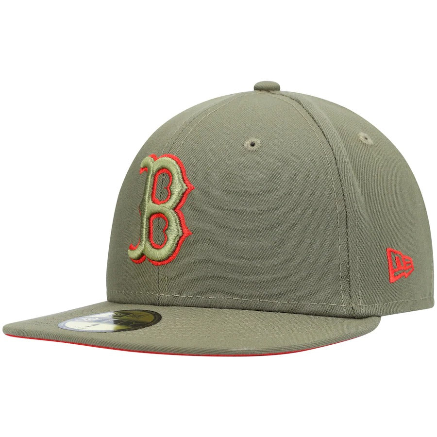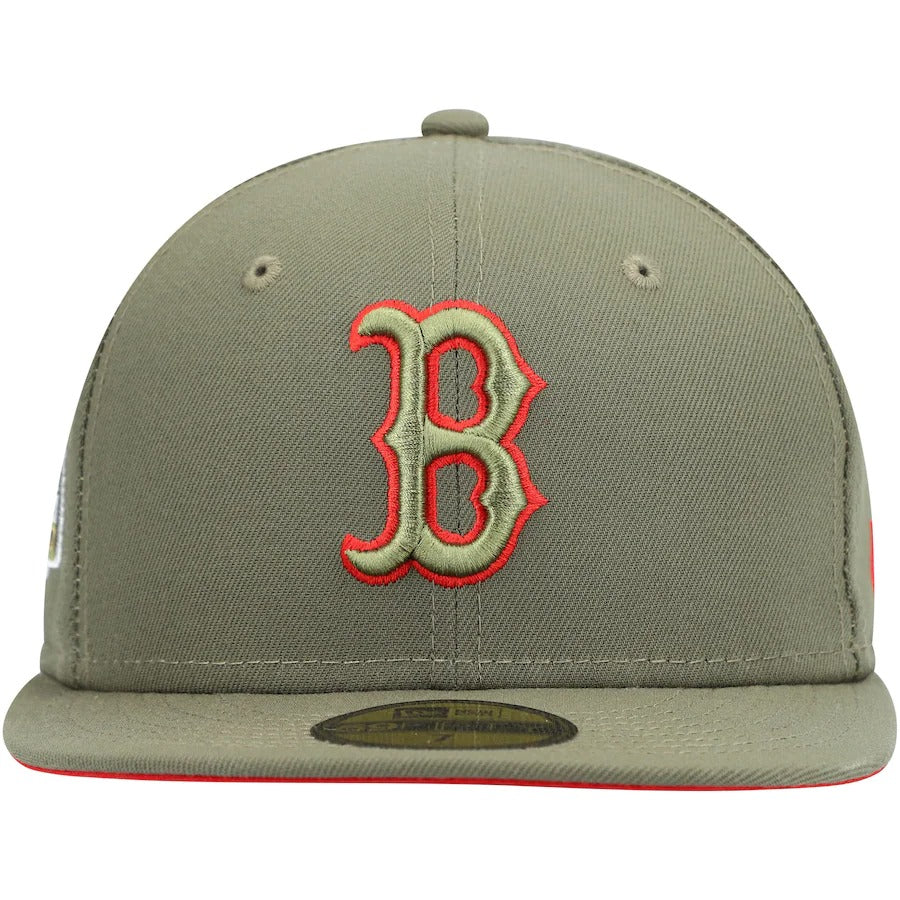 For a Boston Red Sox-inspired look that truly pops, cap it off with this Scarlet Undervisor 59FIFTY fitted hat. With a crisp Boston Red Sox logo set against an allover olive green shade, this New Era hat also has bold embroidery on the side dedicated to a memorable moment in franchise history. Show the world that you're no fairweather fan by donning this cap.