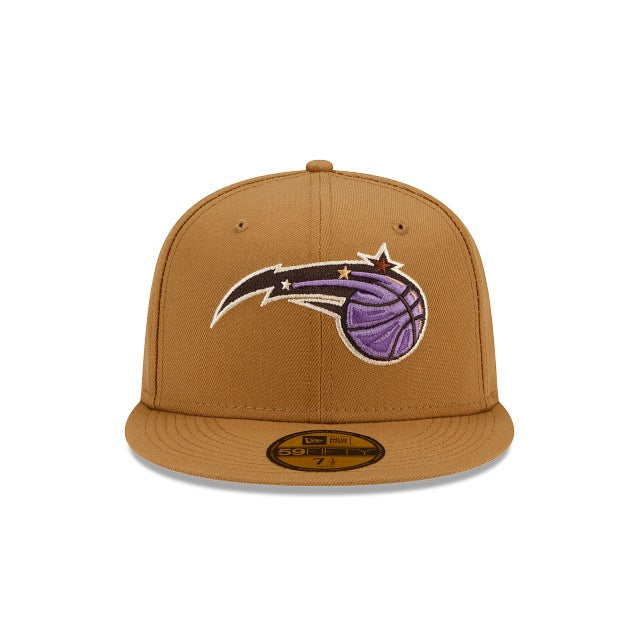 Class is back in session with the Orlando Magic Sweet and Savory 59FIFTY Fitted Cap featuring hues reminiscent of peanut butter and jelly with an embroidered team logo at the front panels and a matching NBA logo at the rear. Additional details include a purple undervisor.