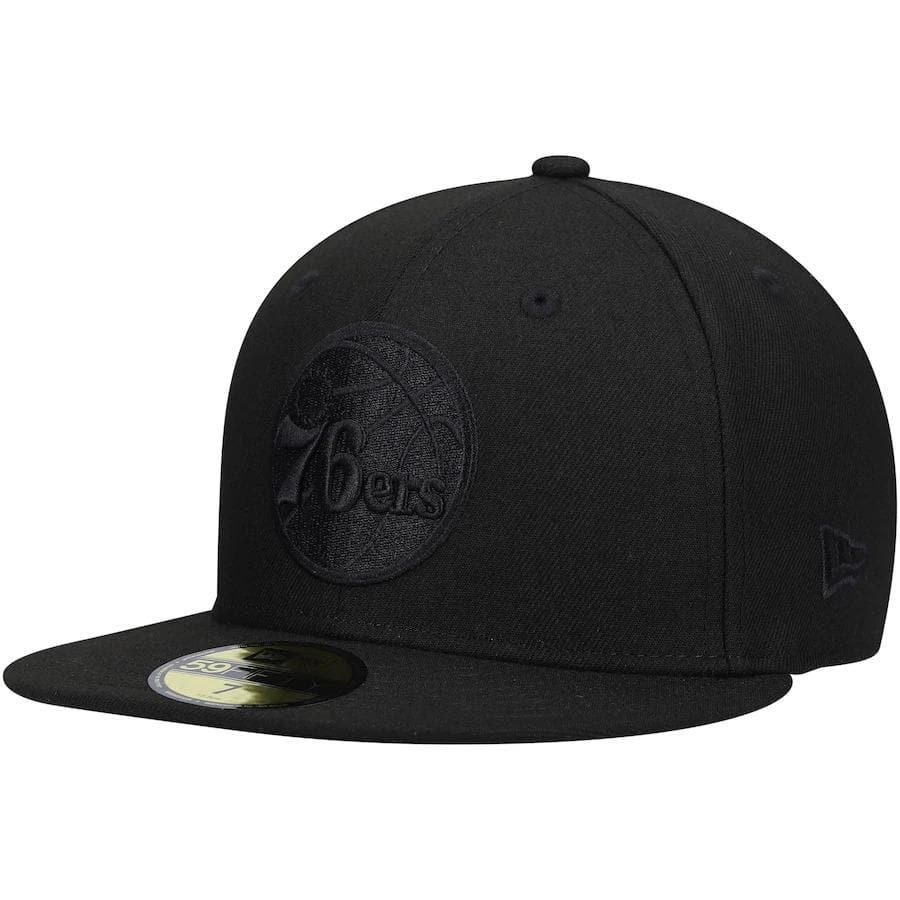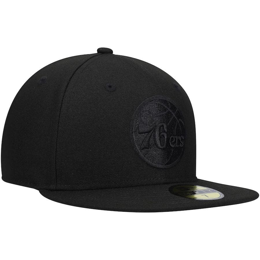 Pair just about any outfit with this Philadelphia 76ers Black On Black 59FIFTY hat from New Era. Its stylish design features tonal Philadelphia 76ers graphics embroidered across the front panels and a flat bill you can curve. Additionally, the fitted construction gives this structured cap a snug feel.