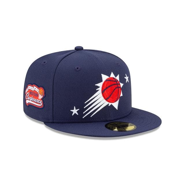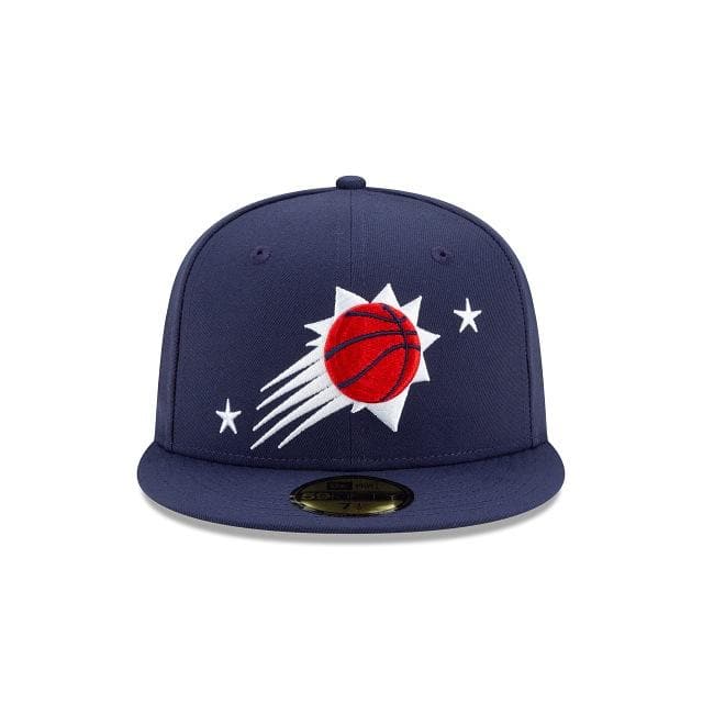 The Phoenix Suns Americana 59FIFTY Fitted Cap features an embroidered Phoenix Suns logo at the front panels with star embroideries throughout the crown. Additional details include a NBA Champions patch at the right-wear side, the NBA logo at the rear and a gray undervisor.
