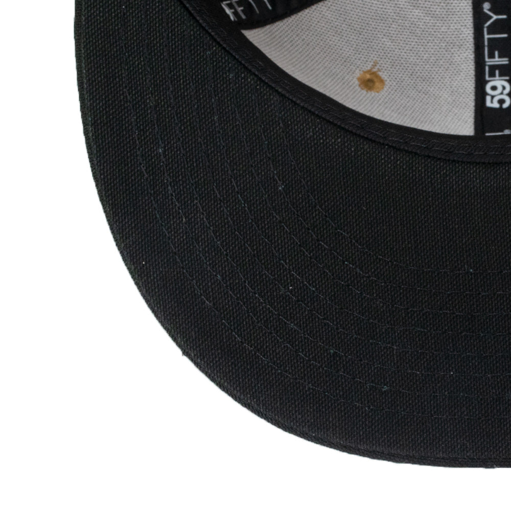 This New Era Phoenix Suns Canvas 59FIFTY fitted hat has a brown six panel structured high crown and embroidered eyelets with a black fabric squatchee button and flat bill with a black undervisor and sweatband. The front panel features the Phoenix Suns team logo embroidery.