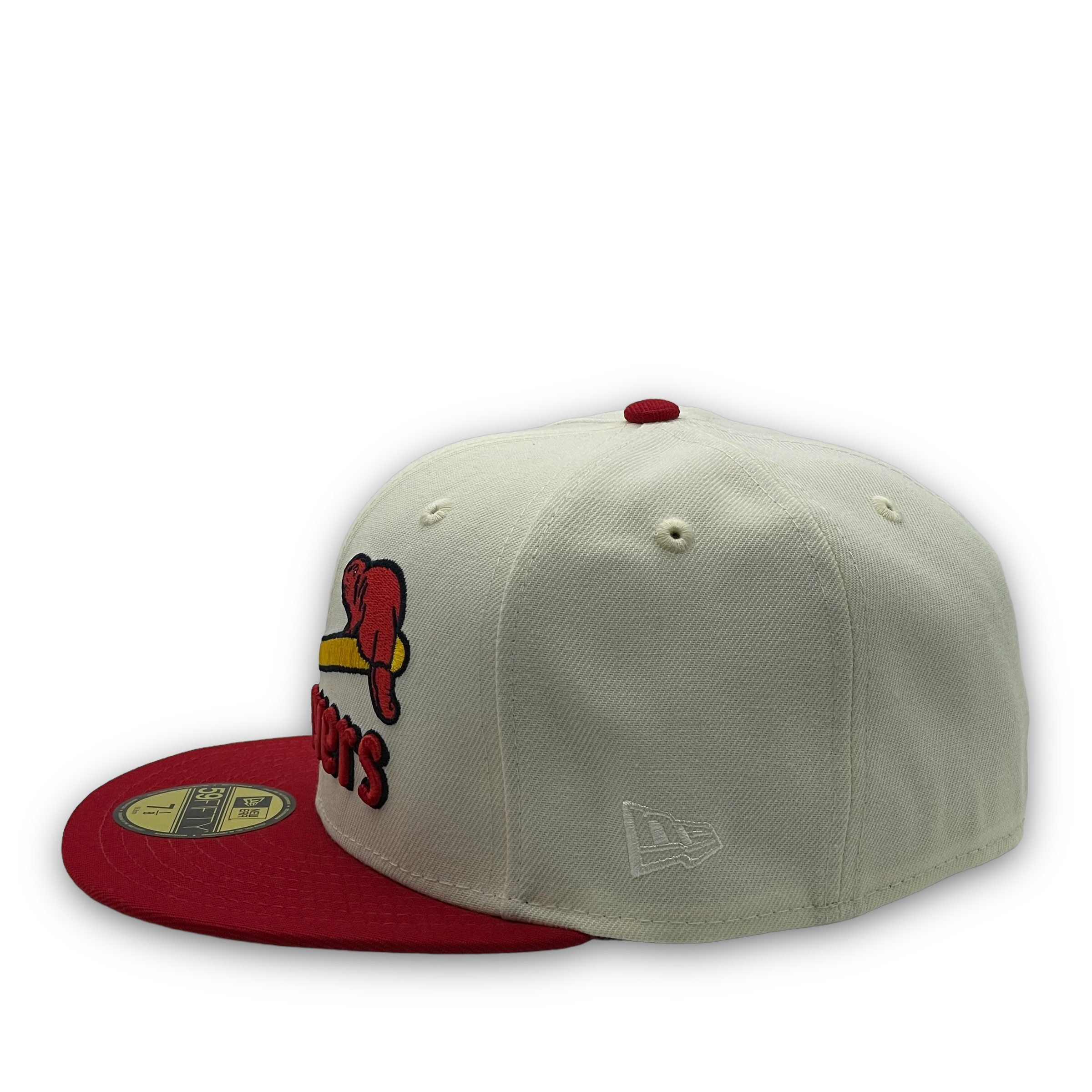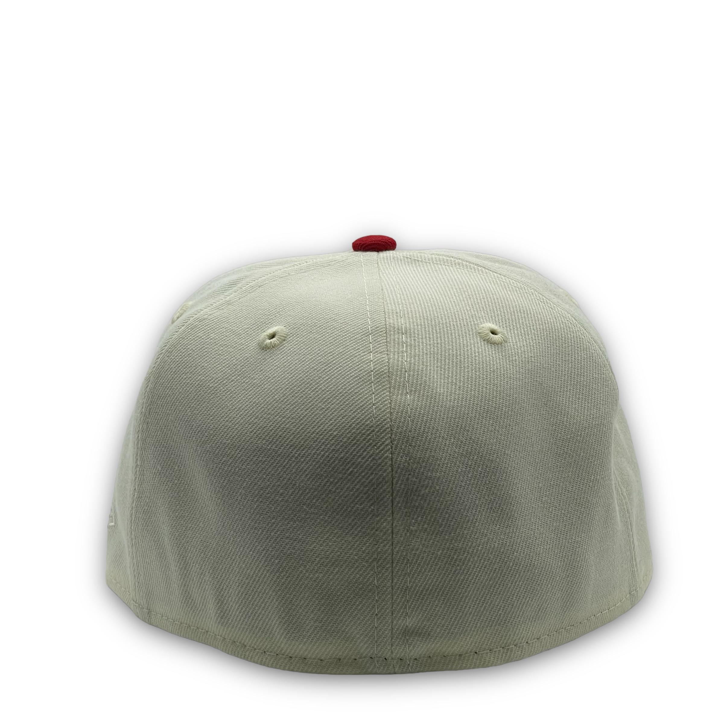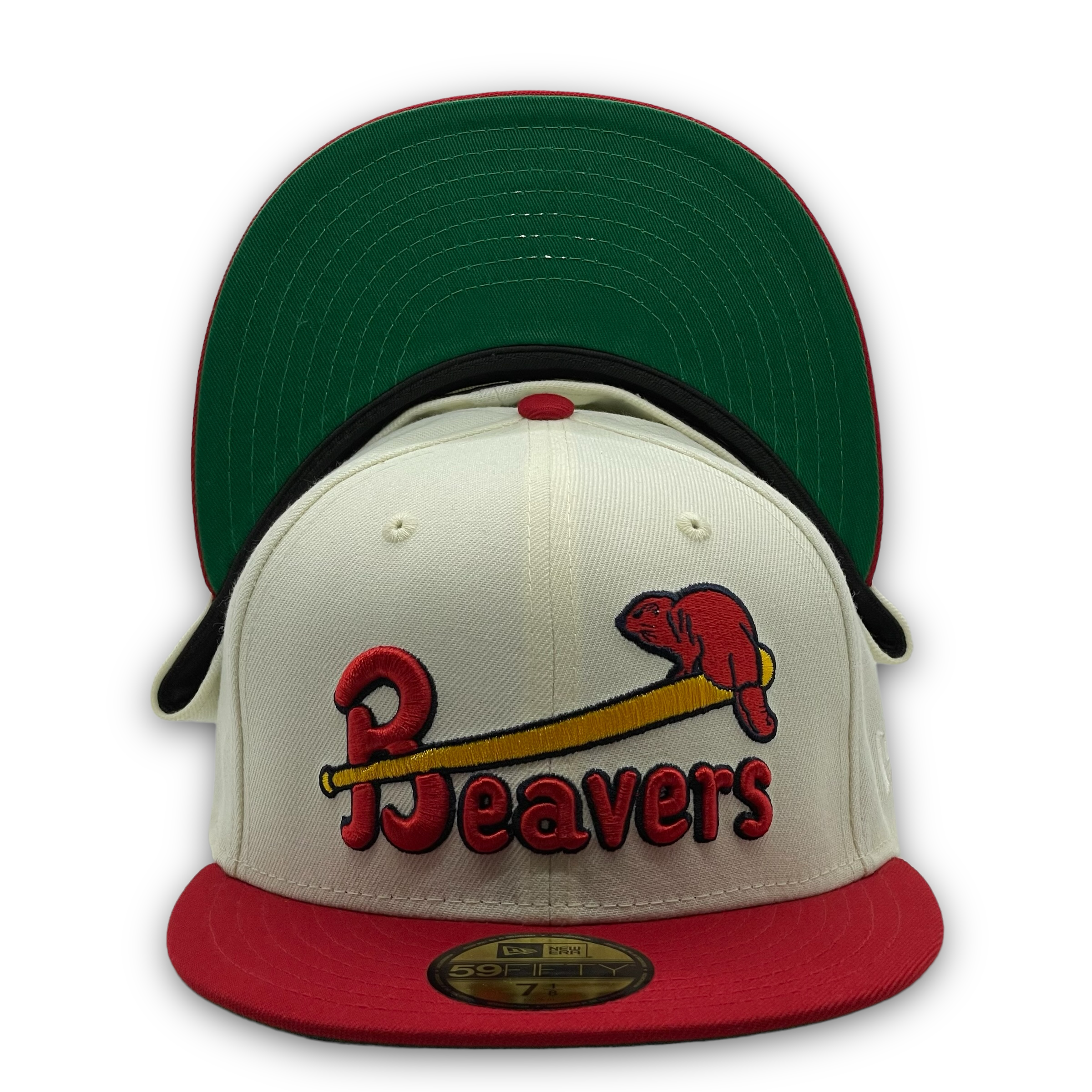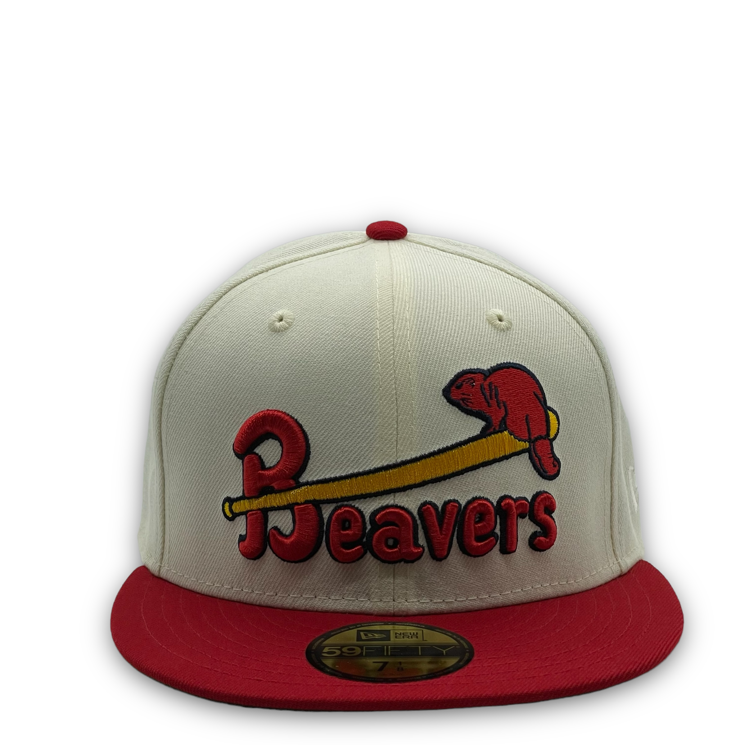This New Era Portland Beavers 1956 Jersey Front Chrome/Red 59FIFTY Fitted Hat was released by Burdeens Chicago. The fitted cap features a six panel structured high crown, embroidered eyelets and fabric squatchee button in a chrome and red colorway. The front panel includes the Portland Beavers logo embroidery and the New Era logo embroidered on the left panel and the official MILB insignia embroidered on the rear crown.