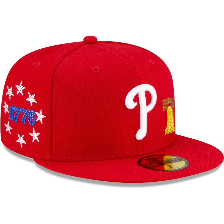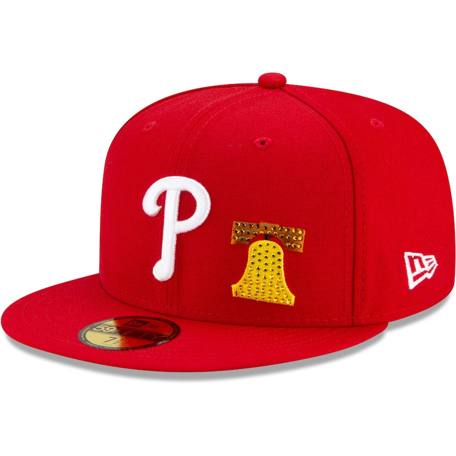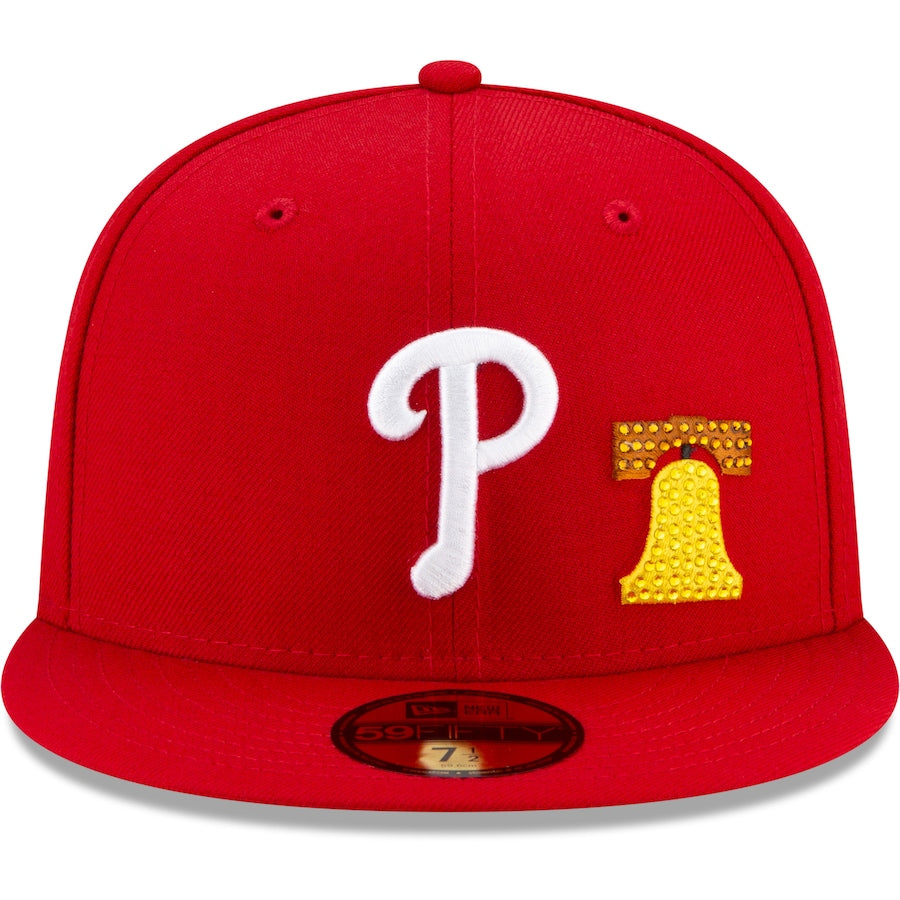 Shine the spotlight on your Philadelphia Phillies when you don this Crystal Icons 59FIFTY hat from New Era. It features the Philadelphia Phillies logo in raised embroidery and graphics related to the team's home base accented in rhinestones. The fitted construction provides a perfectly snug fit, as well.