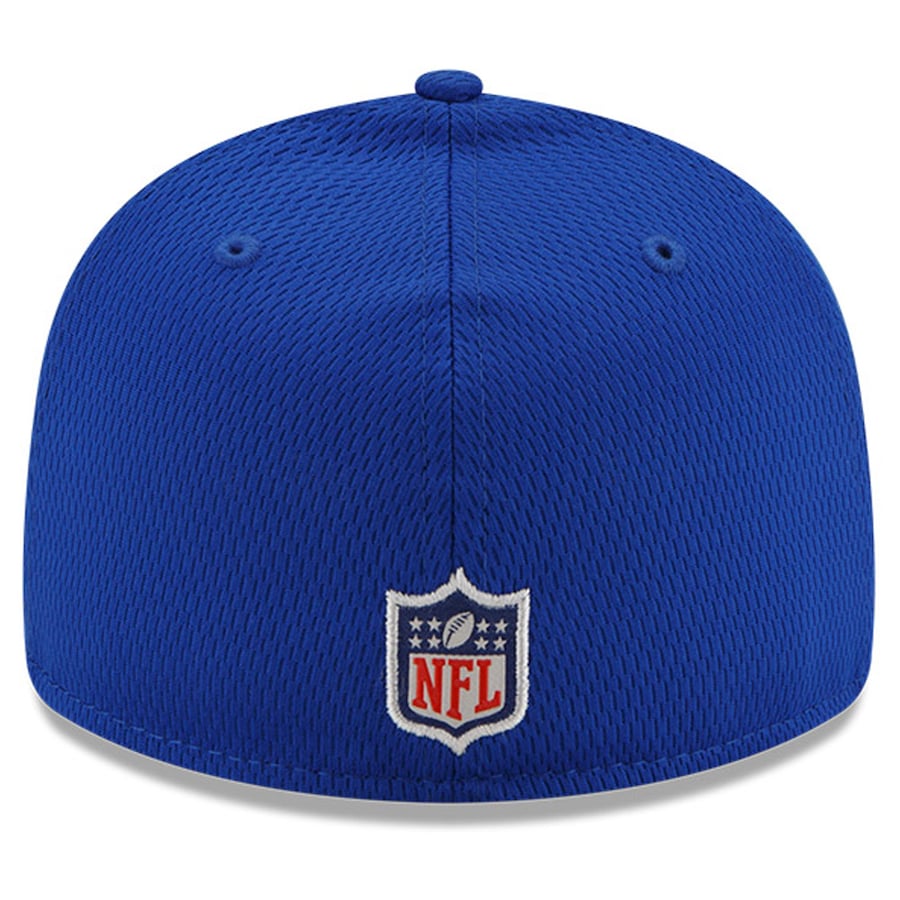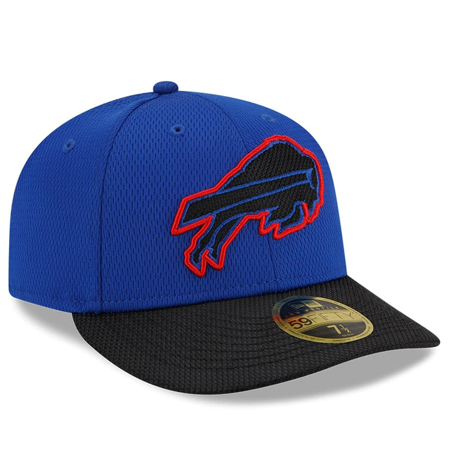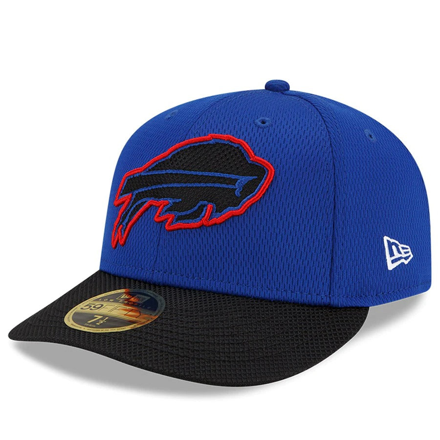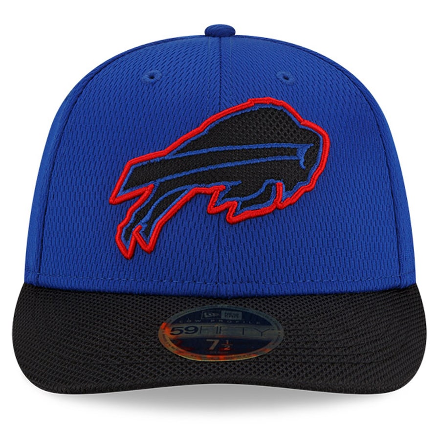 Refresh your Buffalo Bills gear with this 2021 NFL Sideline Road Low Profile 59FIFTY Fitted Hat. This New Era two-tone cap is constructed of team color Dashmark fabric on the crown and black Dashmark fabric on the visor. The front crown features a bold Buffalo Bills fabric applique logo with contrasting color embroidery. Look for your favorite Buffalo Bills players and coaches wearing this cap on-field throughout the season!