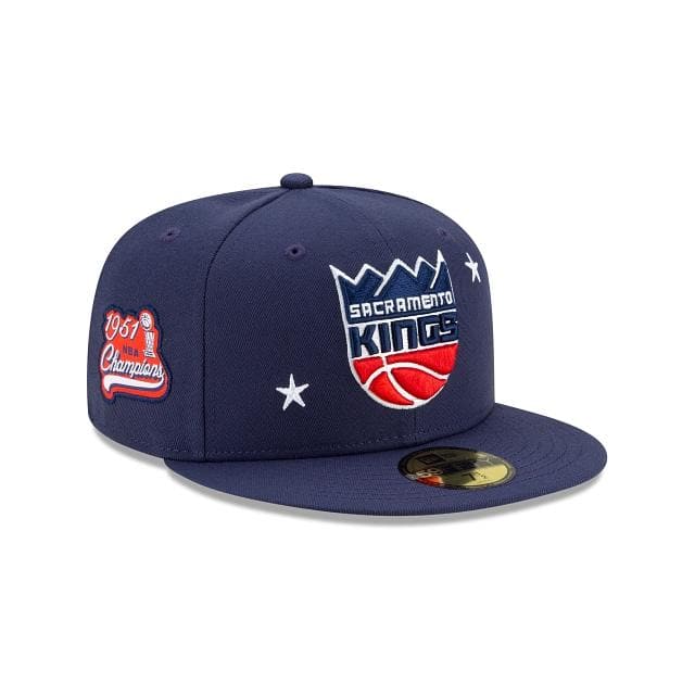The Sacramento Kings Americana 59FIFTY Fitted Cap features an embroidered Sacramento Kings logo at the front panels with star embroideries throughout the crown. Additional details include a NBA Champions patch at the right-wear side, the NBA logo at the rear and a gray undervisor.