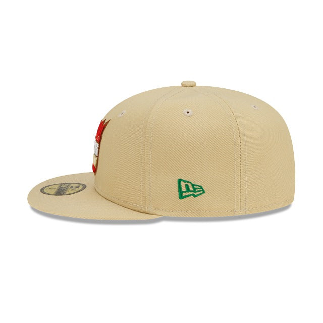 Dessert is served! The Sacramento Kings Cookie Collection 59FIFTY Fitted Cap features hues of red, green and tan with an embroidered Kings logo at the front panels and a matching NBA logo at the rear. Additional details include a green undervisor.