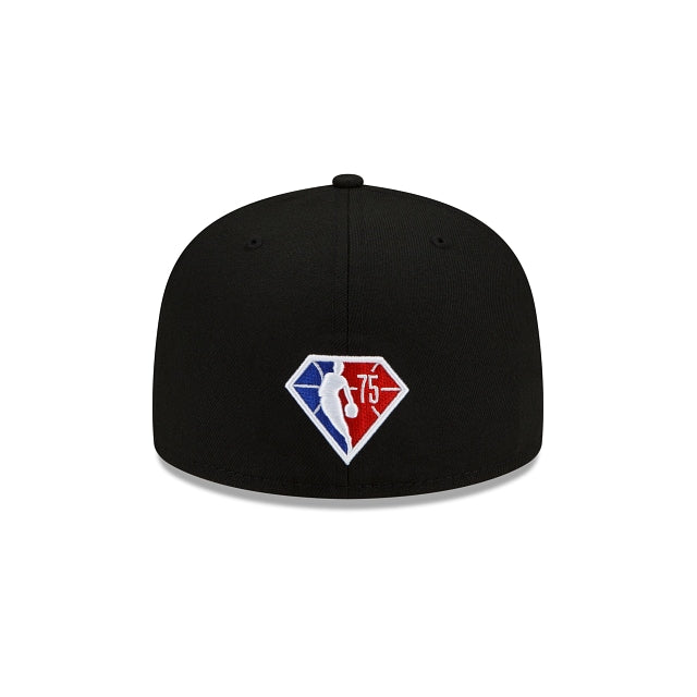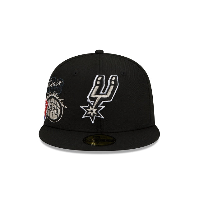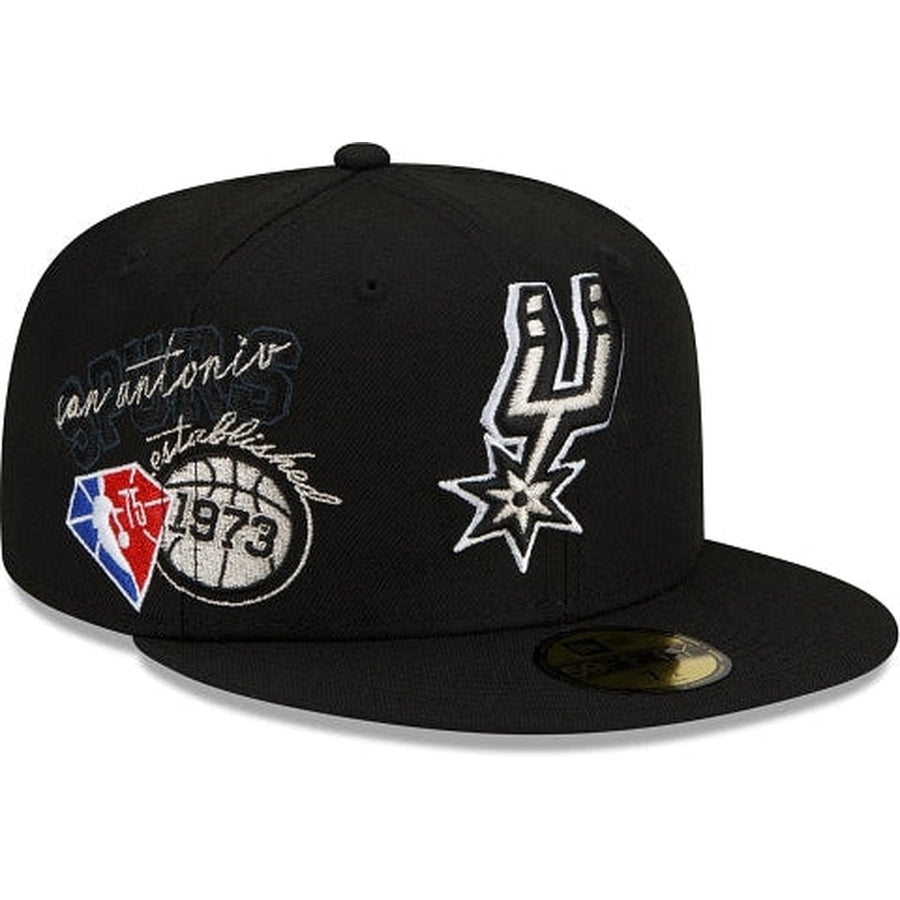 The push for the playoffs starts with this year's NBA Back Half Collection. The San Antonio Spurs Back Half 59FIFTY Fitted Cap features an embroidered Spurs logo at the front panels with team and league specific embroidered artwork at the right-wear side extending to the front panels, and the NBA 75th anniversary logo embroidered at the rear.