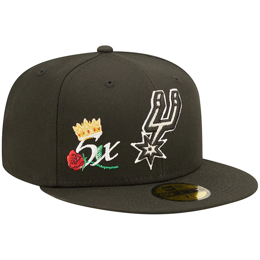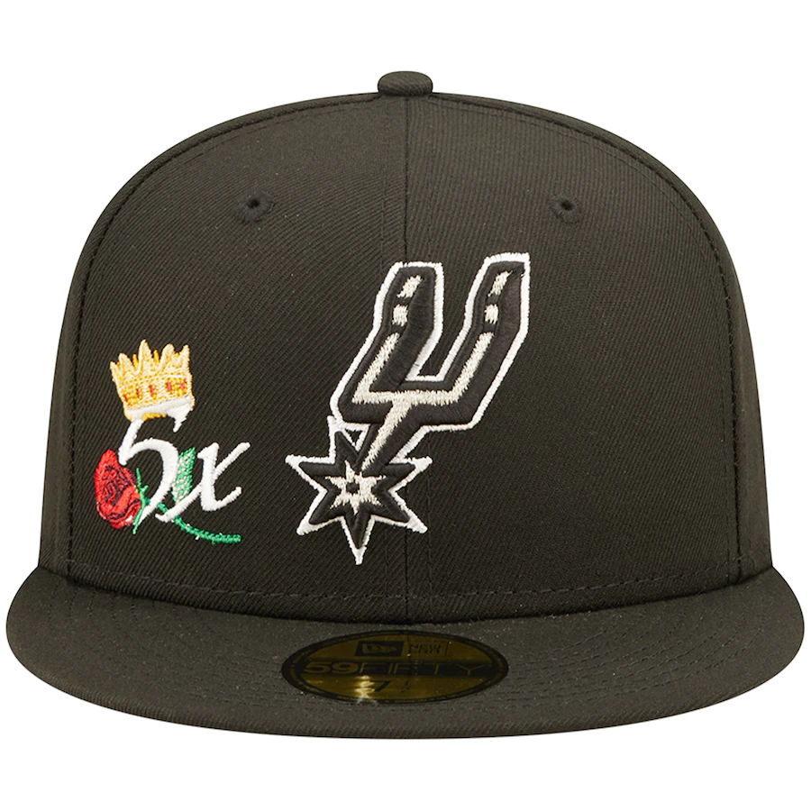 Put the spotlight on the winning history of your San Antonio Spurs with this Crown 59FIFTY hat from New Era. It features the San Antonio Spurs logo in raised embroidery and commemorative 5x NBA Finals Champions graphics embroidered on the front and back. The fitted construction also ensures a perfect fit.