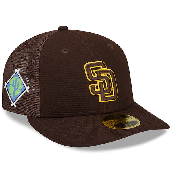 The wait is over! Get ready for the start of the 2022 MLB season in true San Diego Padres style with this Spring Training Low Profile 59FIFTY Fitted Hat from New Era. This cap has a structured fit for a street-ready look, while the mesh back allows for more breathability. Best of all, the spirited embroidery on the front and the bold applique on the side further show off your excitement for the San Diego Padres pursuit of a World Series!