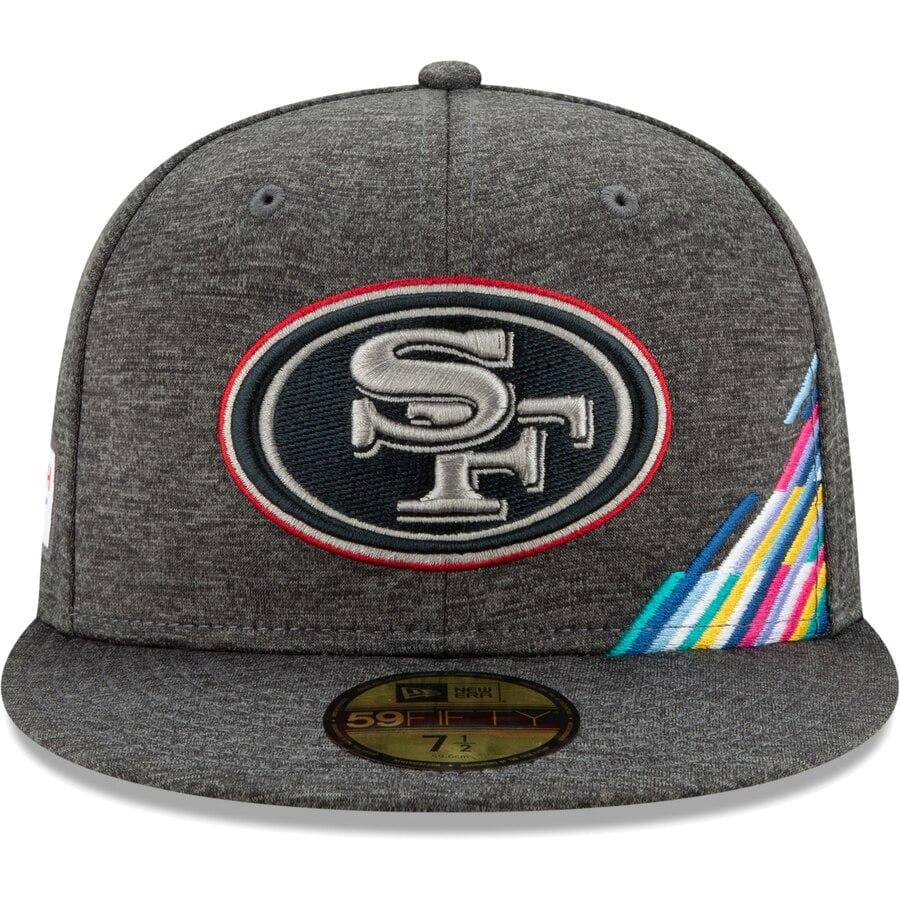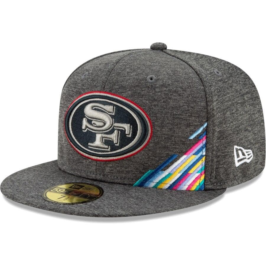 Support the fight against cancer with the 2019 NFL Crucial Catch Sideline Collection, worn by players and coaches during weeks 5 through 10 of the NFL season. The 59FIFTY fitted cap uses shadow tech fabric and features an embroidered San Francisco 49ers logo on the front with accent stitching to outline the logo. Crucial Catch-inspired lines are located on the lower right front panel and the Crucial Catch "Intercept Cancer" side patch is woven on the right-wear side. The back features the Official NFL100 logo to complete this New Era cap. The NFL does not profit from the sale of Crucial Catch products. Charitable contributions are donated to the American Cancer Society.