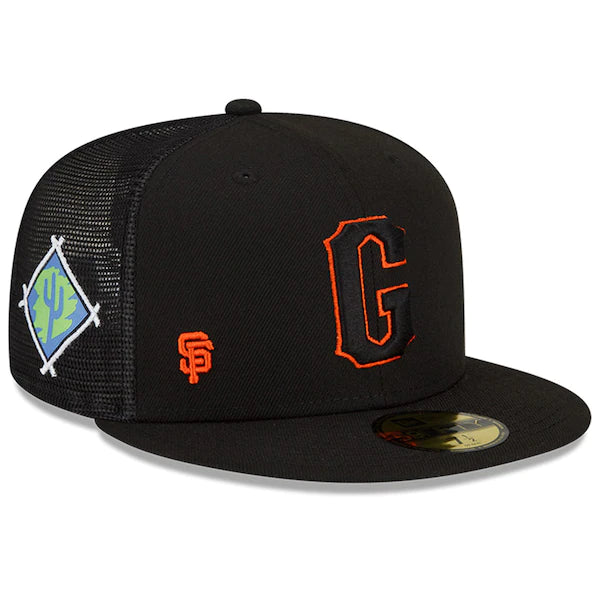 Get ready to start the MLB 2022 regular season in true San Francisco Giants style with this Spring Training 59FIFTY fitted hat from New Era. Along with a high crown and structured fit for a street-ready look, the mesh back allows for more breathability. Best of all, the spirited San Francisco Giants embroidery on the front and the bold applique on the side further show off your excitement for the upcoming season.