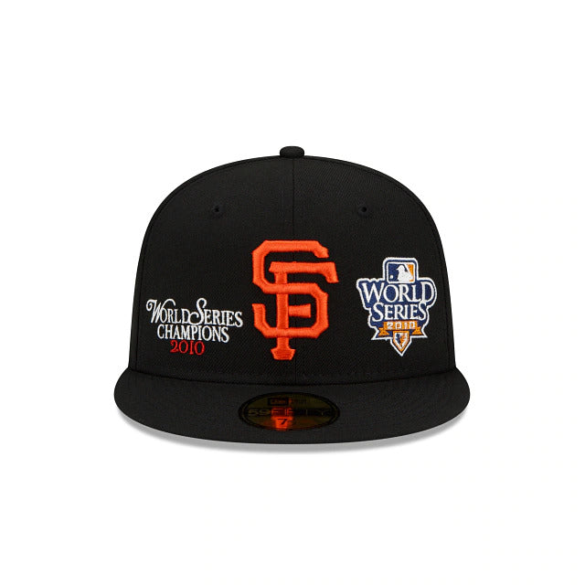 Relive some of baseball's most exciting moments with the San Francisco Giants Champion 59FIFTY Fitted Cap featuring an embroidered teams logo, complimented by a World Series Champions script and World Series patch embroidered at the front panels. Additional details include a MLB Batterman logo at the rear and a gray undervisor.