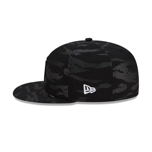 Polartec meets Major League Baseball with the San Francisco Giants Polartec Neoshell 59FIFTY Fitted Cap featuring the world's most breathable waterproof fabric technology in a black tiger camo design, with an embroidered Giants logo at the front panels and a match MLB Batterman logo at the rear.