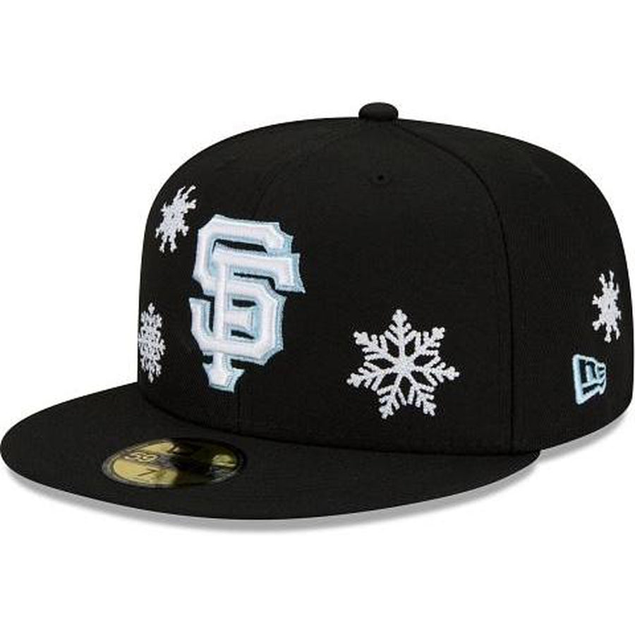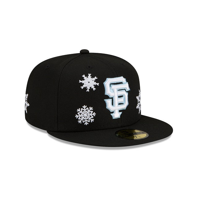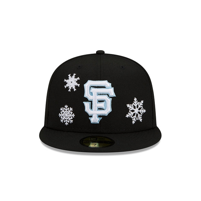 Bundle up, everyone. The San Francisco Giants Snow 59FIFTY Fitted Cap features an embroidered Giants logo at the front panels, embroidered snowflakes throughout the crown and a MLB Batterman logo at the rear. Additional details include a light blue undervisor.