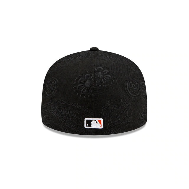 Enter the vortex with the San Francisco Giants Swirl 59FIFTY Fitted Cap featuring a tonal paisley embroidery throughout the crown with the teams logo embroidered at the front panels with a MLB Batterman logo at the rear and a gray undervisor.