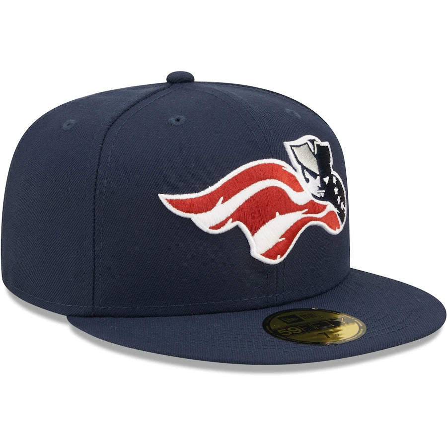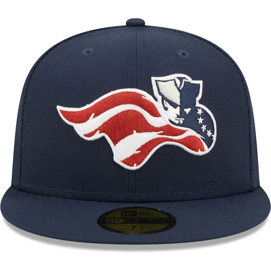 Wearing this New Era 59FIFTY hat on more than just game day allows your Somerset Patriots fandom to be seen all the time. The trendy high crown and fitted closure pair for a classic design. Bold Somerset Patriots embroidery across the front panels lets everyone know who you root for on the diamond.