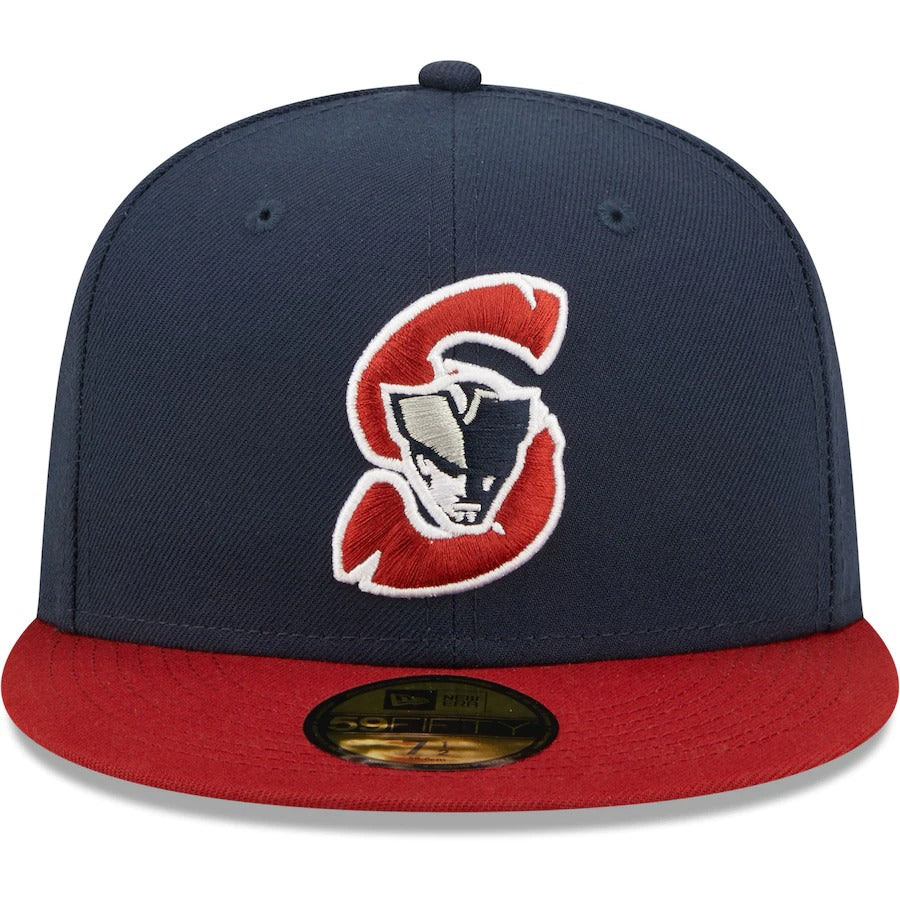 Wearing this New Era 59FIFTY hat on more than just game day allows your Somerset Patriots fandom to be seen all the time. The trendy high crown and fitted closure pair for a classic design. Bold Somerset Patriots embroidery across the front panels lets everyone know who you root for on the diamond.
