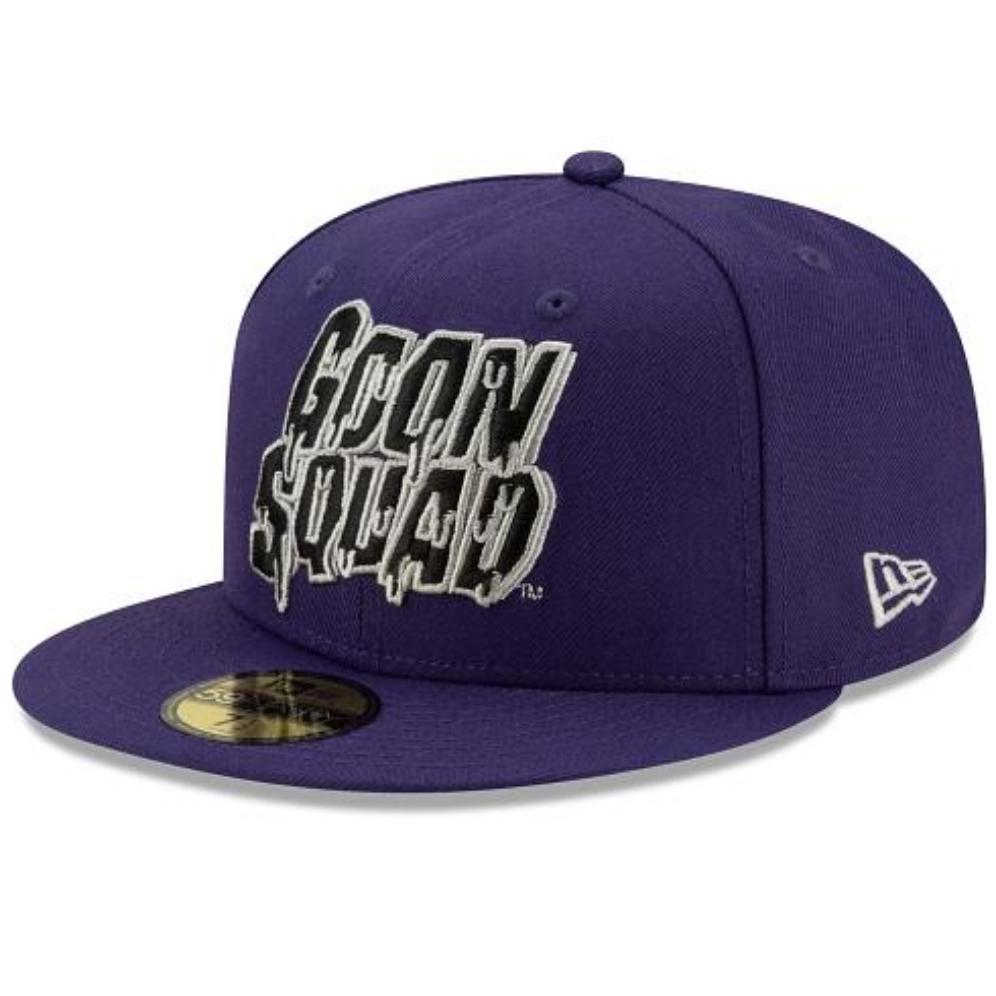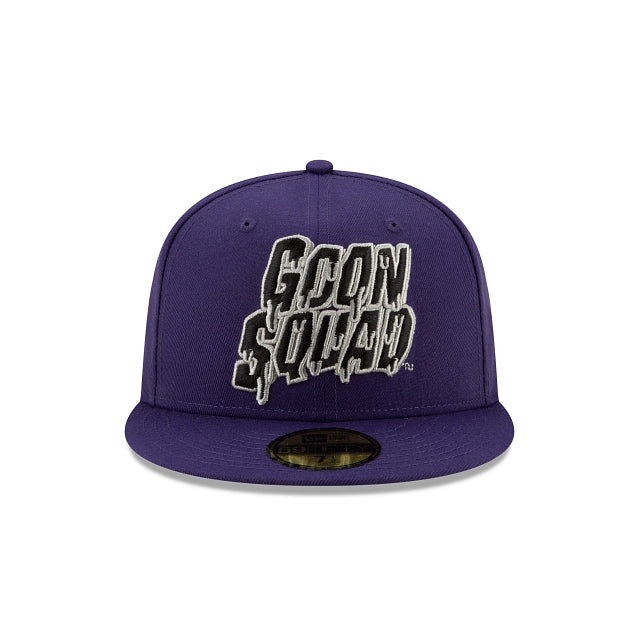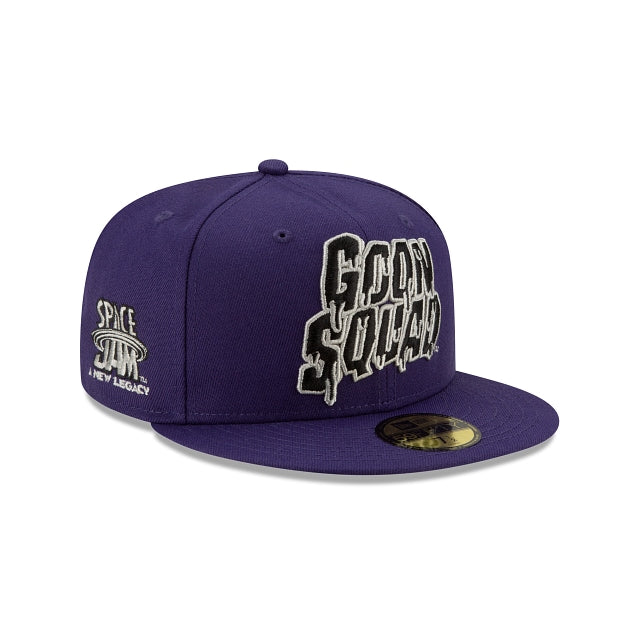 A new legacy starts now. The Space Jam Goon Squad 59FIFTY Fitted Cap features an embroidered Goon Squad logo at the front panels with a Space Jam: A New Legacy logo embroidered at the right-wear side and a basketball embroidered at the rear. Additional details include a gray undervisor.