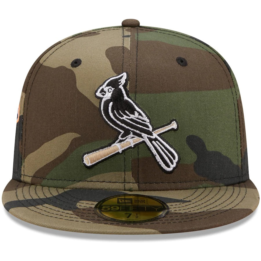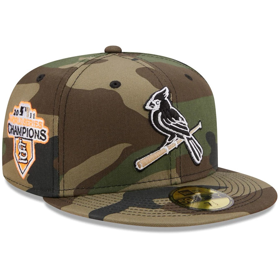 Be bold and use camouflage to draw attention to your St. Louis Cardinals pride with this 2011 World Series Flame Undervisor 59FIFTY hat. This New Era hat is decked out in rich embroidery dedicated to a memorable St. Louis Cardinals moment, which contrasts brilliantly against the camo crown. St. Louis Cardinals pride is hard to miss when in this fitted cap.