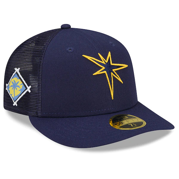 The wait is over! Get ready for the start of the 2022 MLB season in true Tampa Bay Rays style with this Spring Training Low Profile 59FIFTY Fitted Hat from New Era. This cap has a structured fit for a street-ready look, while the mesh back allows for more breathability. Best of all, the spirited embroidery on the front and the bold applique on the side further show off your excitement for the Tampa Bay Rays pursuit of a World Series!