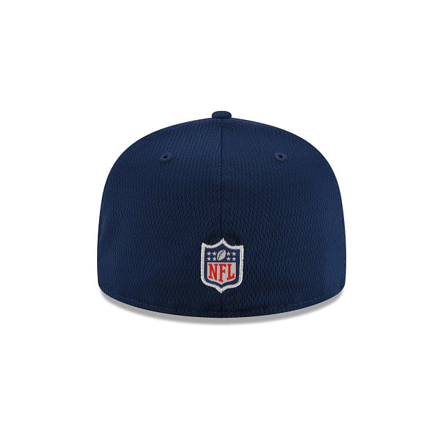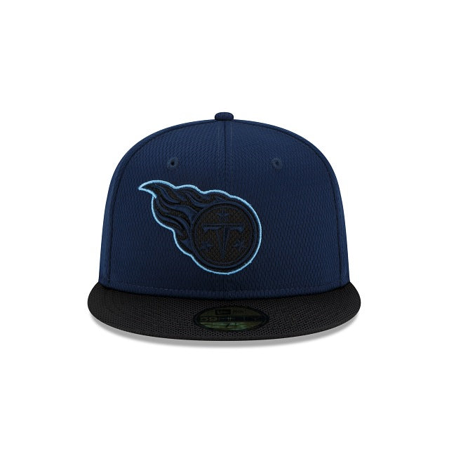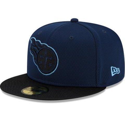 Travel in style with the Tennessee Titans Official NFL Sideline Road 59FIFTY Fitted Cap featuring a unique two-tone dashmark fabrication with an embroidered team logo at the front panels. Team color accents and the Official NFL Shield at the rear complete the official cap that players, coaches and staff will wear on the sidelines during the 2021 NFL season.