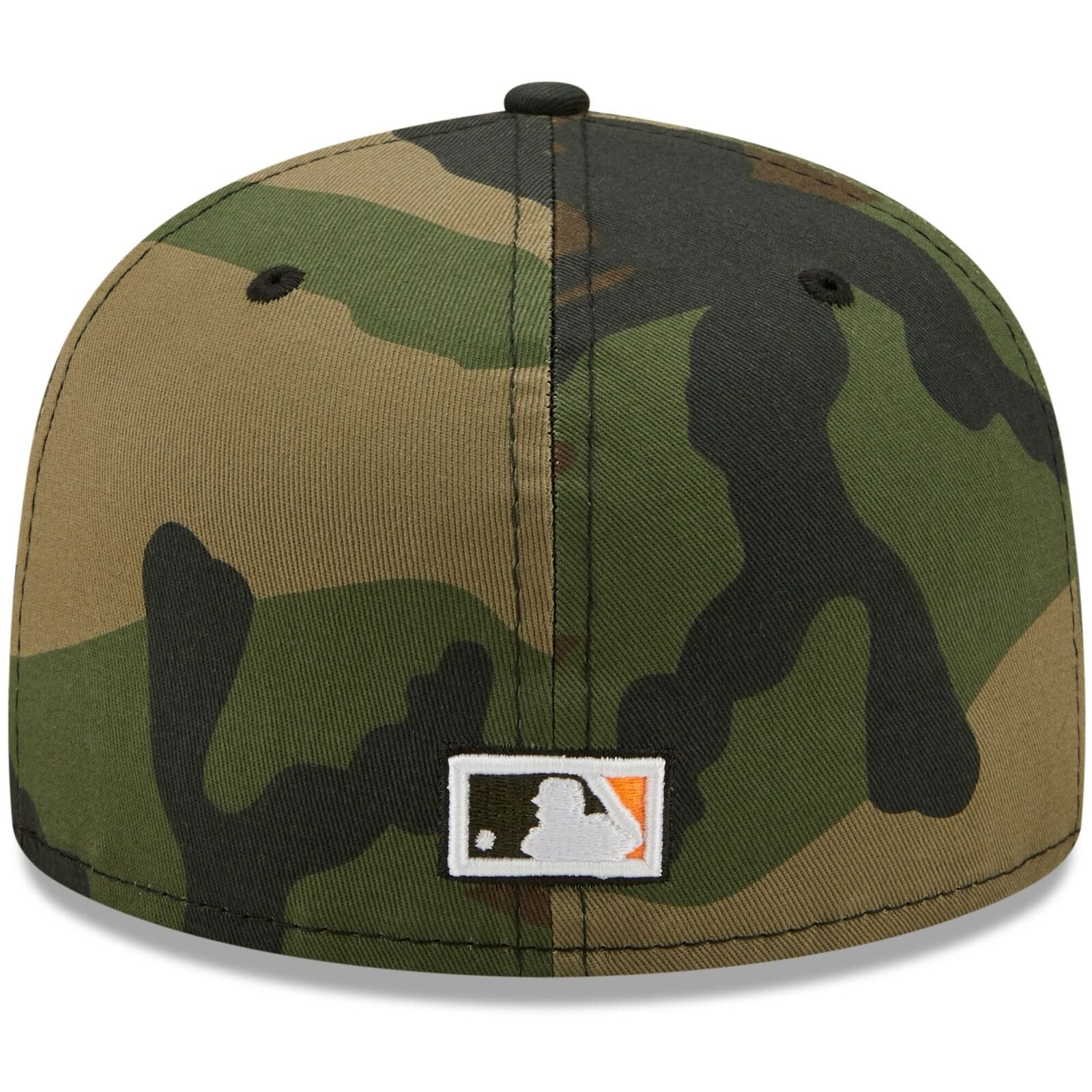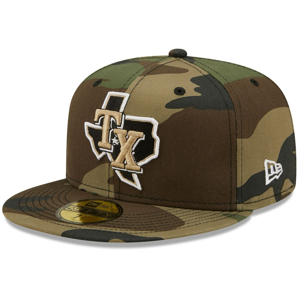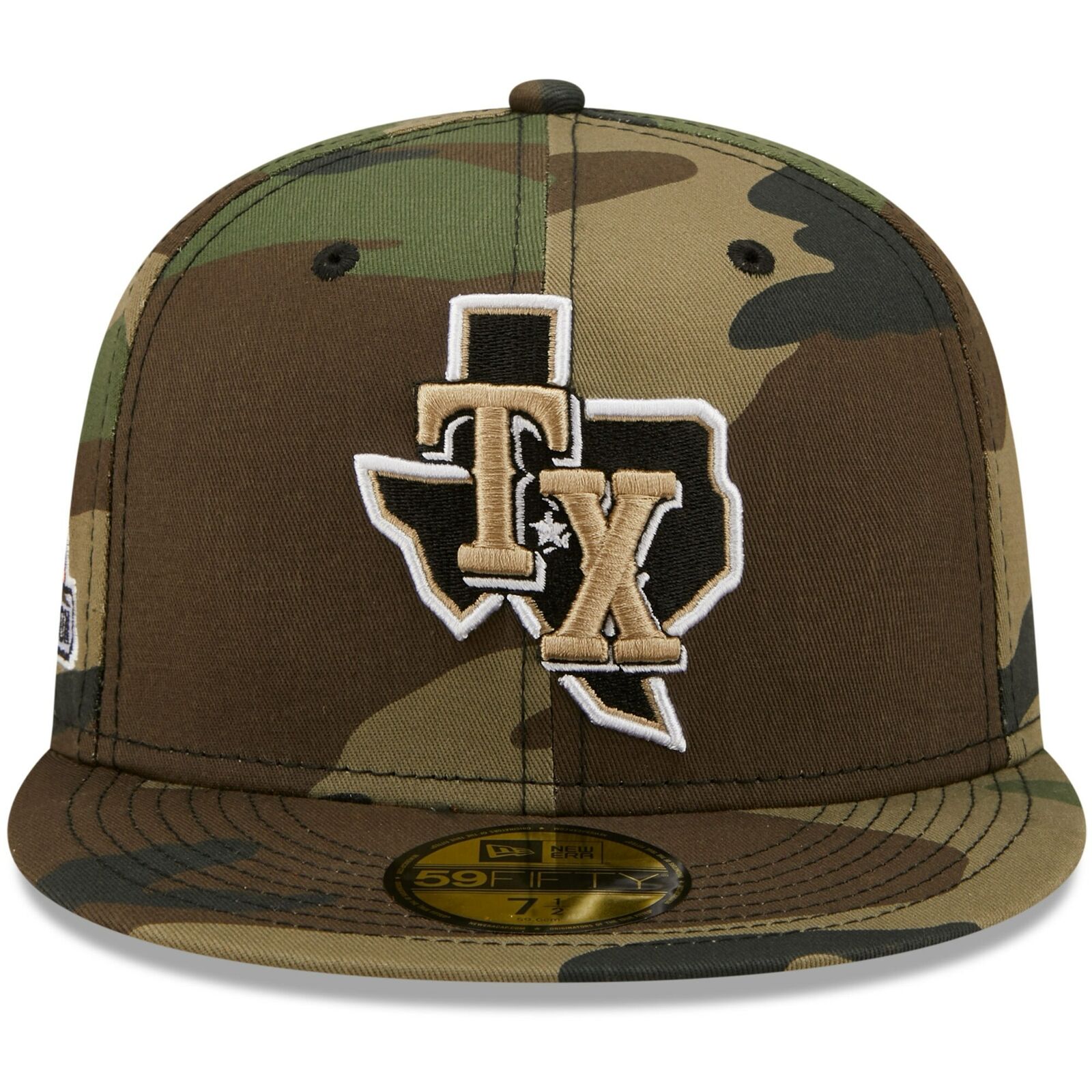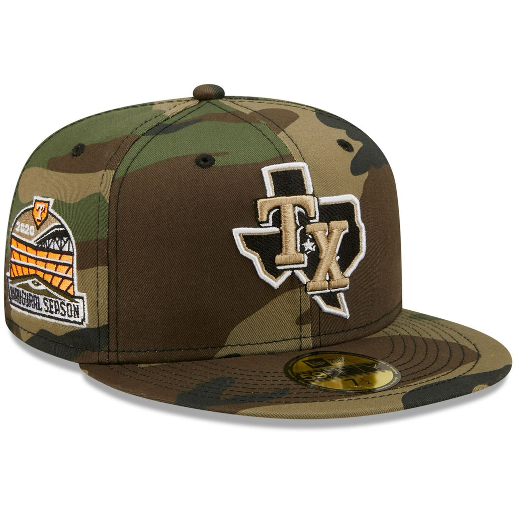 Be bold and use camouflage to draw attention to your Texas Rangers pride with this 2020 Inaugural Season Flame Undervisor 59FIFTY hat. This New Era hat is decked out in rich embroidery dedicated to a memorable Texas Rangers moment, which contrasts brilliantly against the camo crown. Texas Rangers pride is hard to miss when in this fitted cap.