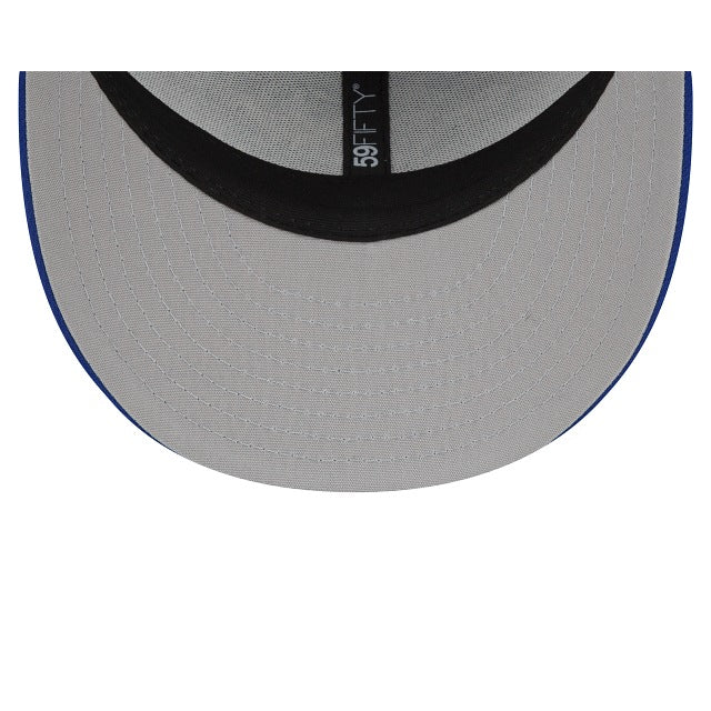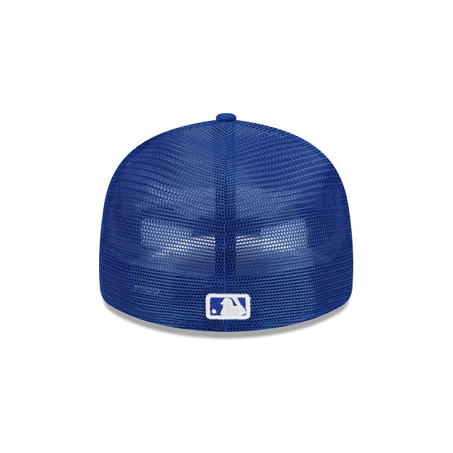 The Toronto Blue Jays 2023 Batting Practice Low Profile 59FIFTY Fitted Cap features an embroidered Blue Jays logo at the front panels with a matching MLB Batterman logo at the rear and a gray undervisor.