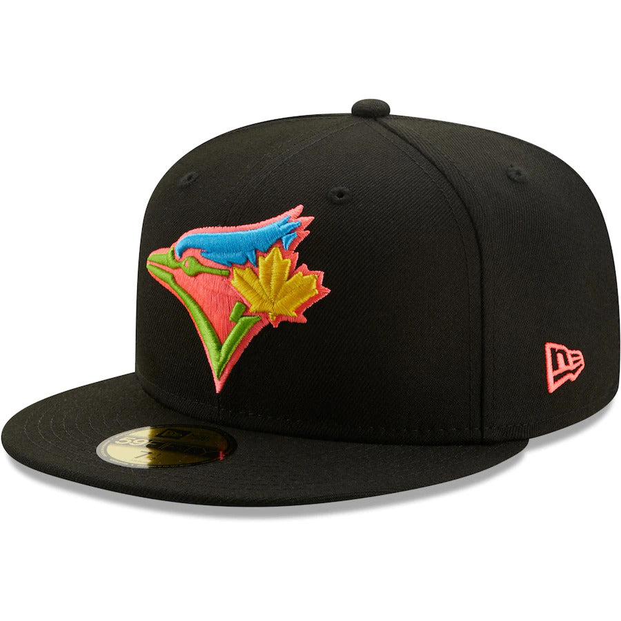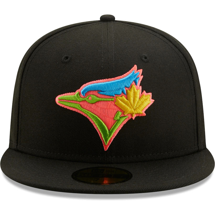 Finish your Toronto Blue Jays game day outfit off brilliantly with this vibrant Black Glow 59FIFTY fitted hat from New Era. This distinct lid features a colorful team logo and undervisor that will have heads turning for all the right reasons. When you want an accessory that's chock-full of Toronto Blue Jays spirit, reach for this eye-capturing fitted hat.