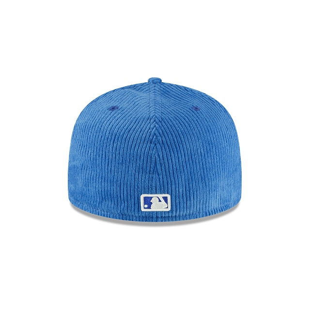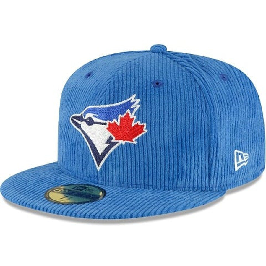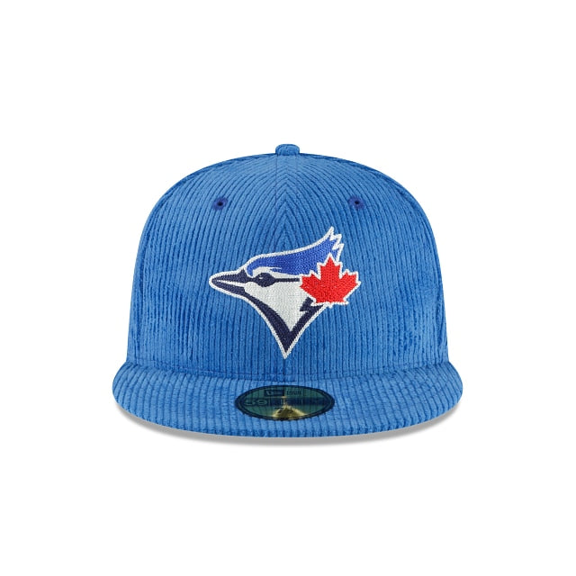 Fit for any occasion. The Toronto Blue Jays Corduroy 59FIFTY Fitted Cap features a team color corduroy fabrication with an embroidered Blue Jays logo at the front panels with a MLB Batterman logo at the rear and a gray undervisor.