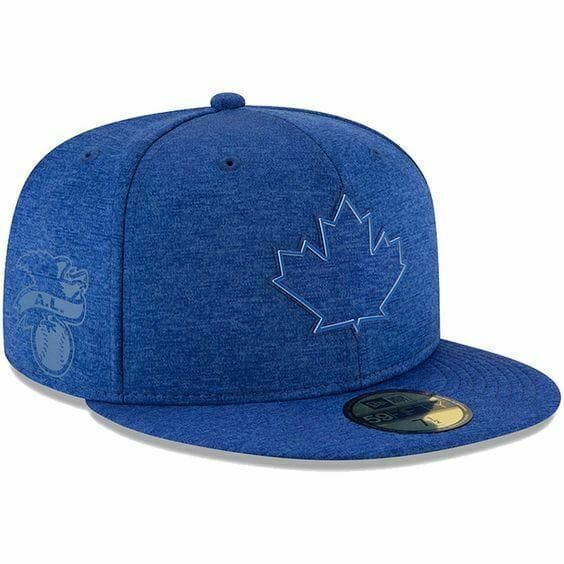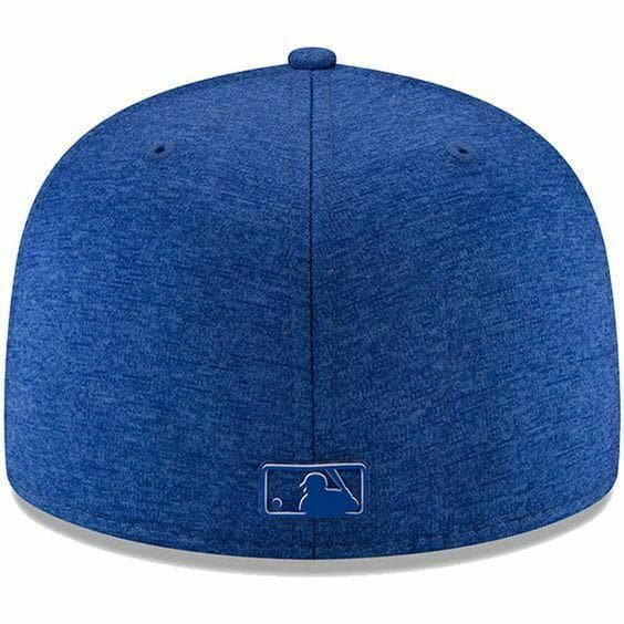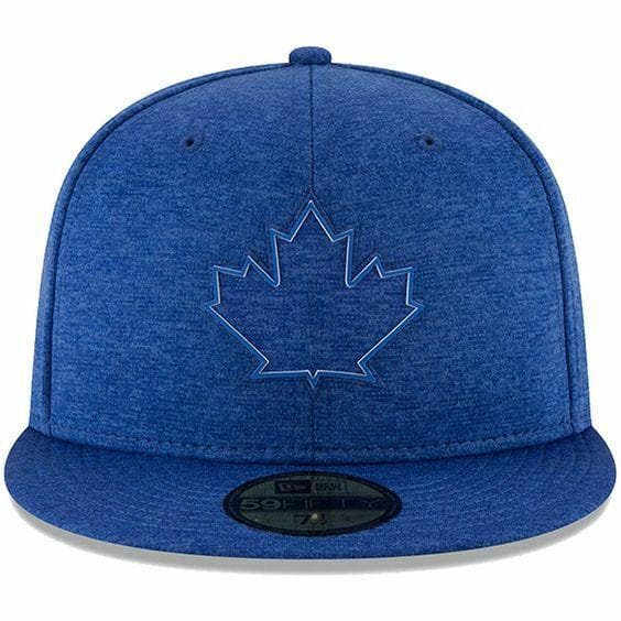 The New Era Toronto Blue Jays 2018 59FIFTY Fitted Hat features a solid heather blue colorway. Everything from the six panel high crown, embroidered eyelets, fabric squatchee button and flat bill is heather blue. The fitted hat also has a white sweat band with a blue bottom undervisor (under brim).