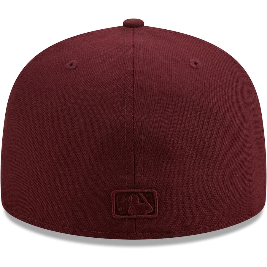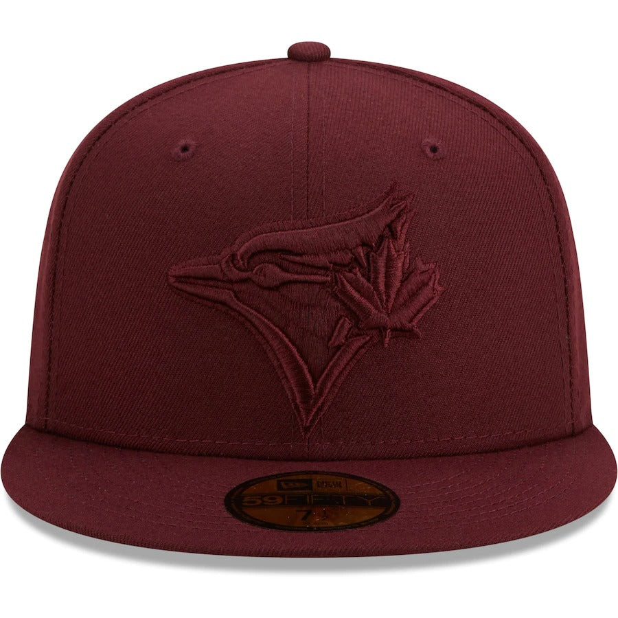 This Oxblood Tonal fitted hat from New Era is just what you need to show off your spirited Toronto Blue Jays style. Along with a structured design, this 59FIFTY cap offers a flat bill to shield the sun while bringing street-ready fashion to your collection. Don't forget about the top-notch Toronto Blue Jays embroidery on the front panels, allowing you to wear your pride front and center.