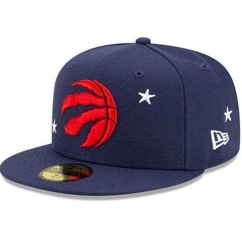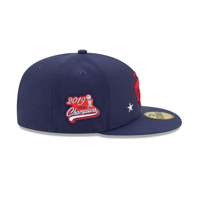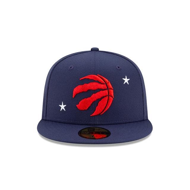 The Toronto Raptors Americana 59FIFTY Fitted Cap features an embroidered Toronto Raptors logo at the front panels with star embroideries throughout the crown. Additional details include a NBA Champions patch at the right-wear side, the NBA logo at the rear and a gray undervisor.