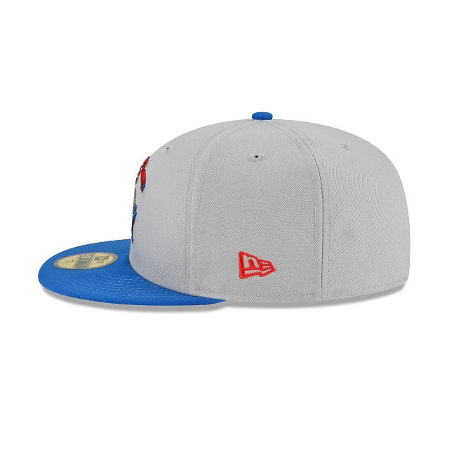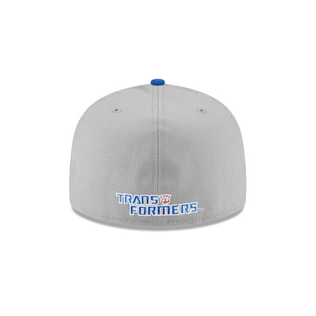 The Transformers Optimus Prime 59FIFTY Fitted Cap features Optimus Prime embroidered at the front panels, and a Transformers wordmark at the rear. Additional details include a red undervisor.