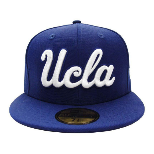 University of California Los Angeles fitted hat is ideally for students of UCLA . The New Era 59Fifty fitted hat features a royal blue six panel, structured high crown, embroidered eyelets and fabric squatchee button. The flat bill of the UCLA fitted hat is also royal blue with the gold & black 59FIFTY official sticker. The front panel features the "UCLA" lettermark embroidered in white thread. The left panel features the New Era "Fly Your Own Flag" logo embroidered in white thread. The back of the crown features a "B" lettermark in white thread which stands for "Bruins" as in UCLA Bruins. This is a great fitted hat for students of the top prestigious UCLA who prefers a structured crown & flat bill cap over the curved bill and relaxed crown with basic features to represent the school spirit.