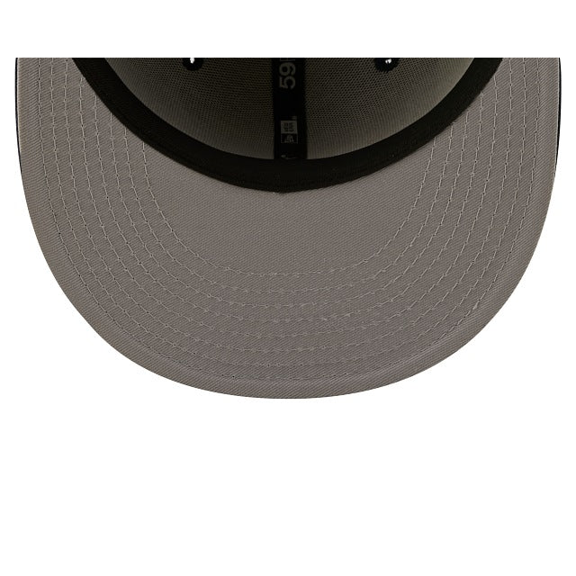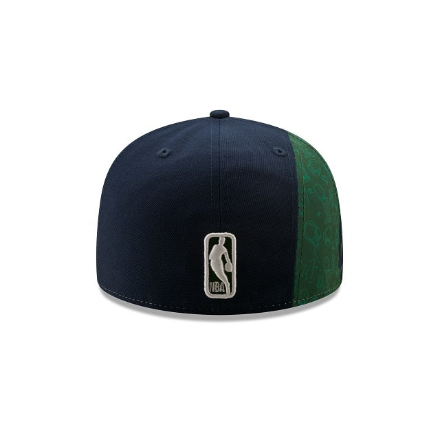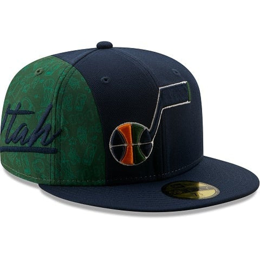 The Utah Jazz Side City Doodle 59FIFTY Fitted Cap features an embroidered Jazz logo at the front panels, a team script with league inspired Doodle at the right-wear side, and a matching NBA logo at the rear.