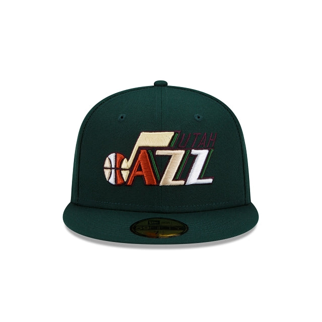 Carve some room in your rotation for the Utah Jazz Turkey Dinner 59FIFTY Fitted Cap featuring natural hues of dark green, brown and tan with an embroidered Jazz logo at the front panels and a matching NBA logo at the rear.