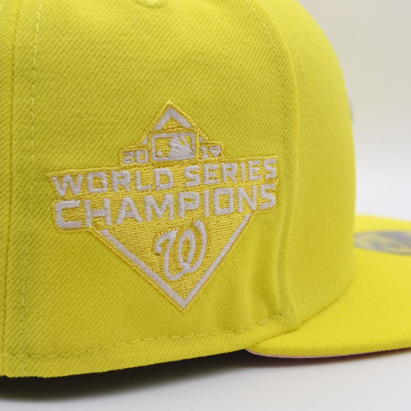 New Era Washington Nationals Yellow 2019 World Series Pink Undervisor 59FIFTY Fitted Hat