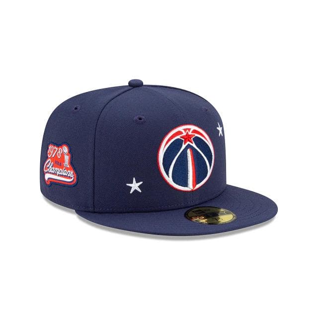 The Washington Wizards Americana 59FIFTY Fitted Cap features an embroidered Washington Wizards logo at the front panels with star embroideries throughout the crown. Additional details include a NBA Champions patch at the right-wear side, the NBA logo at the rear and a gray undervisor.