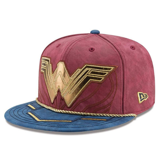 Details: A product of superior Themysciran craftsmanship showered with blessings from the gods. Wonder Woman's ceremonial armor is the product of skilled Themysciran artisans, blacksmiths, and leather-workers. It's also augmented with blessings bestowed by a helpful contingent of Greek gods. Yes, Wonder Woman's meticulously fashioned battle fatigues are functional, durable, inspiring and oddly glistening -- attributes meticulously conveyed in our Wonder Woman Justice League Armor 59Fifty Fitted Hat. Made from an equally blessed 100% polyester, this LIMITED EDITION Wonder Woman hat from New Era reflects Wonder Woman's costume adorned during her exploits in the hit film, Justice League. How does this Wonder Woman hat accurately convey her thrice-blessed fatigues? A body rendered in a deep-red, leather-like material reflecting Diana's armored torso -- it's accompanied by embroidered costume accents. A large, glistening Wonder Woman symbol. A sampling of Wonder Woman's Golden Lasso of Truth affixed to the front. The bill? Flat, leather-like, and rendered in a textured blue layered with embroidered lengths of Wonder Woman's dangling war-skirt. Under the bill? An image of Wonder Woman's movie symbol. Hey! What's on the back?? An embroidered Justice League movie shield. The official New Era sticker? It's right there, resting soundly under the bill. The lining? A soft interior featuring floating Wonder Woman symbols, Justice League movie symbols and logos.